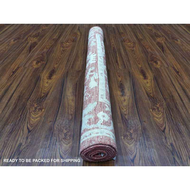4’1″x6′ Red Angora Oushak With Faded Out Colors Extra Soft, Velvety Wool Hand Knotted Oriental Rug Sh67581