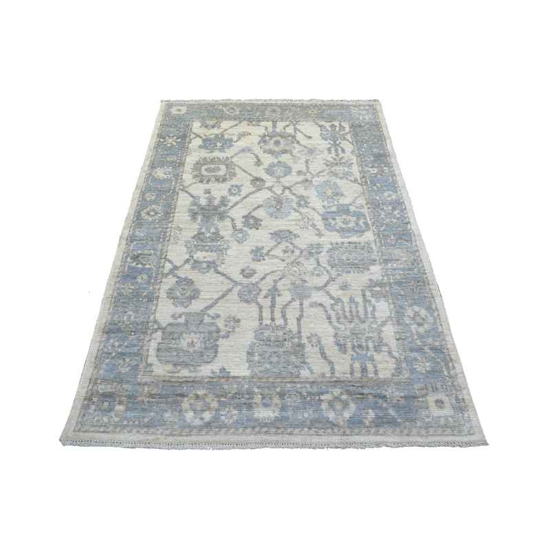 4’1″x6’1″ Ivory Angora Oushak Soft Colors With Leaf Design Hand Knotted Natural Dyes, Afghan Wool Oriental Rug Sh71875