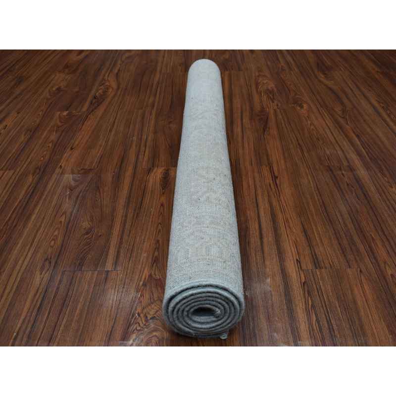 4’1″x6’1″ White Wash Peshawar Mahal Design Pure Wool Hand Knotted Oriental Rug Sh53928