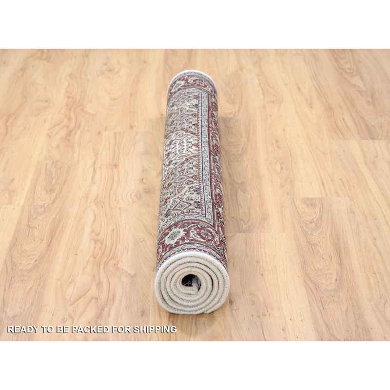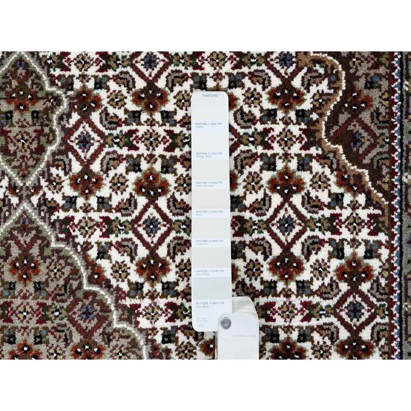 4’1″x6’2″ Ivory Tabriz Mahi Wool and Silk Fish Medallion Design Hand Knotted Fine Oriental Rug Sh63344