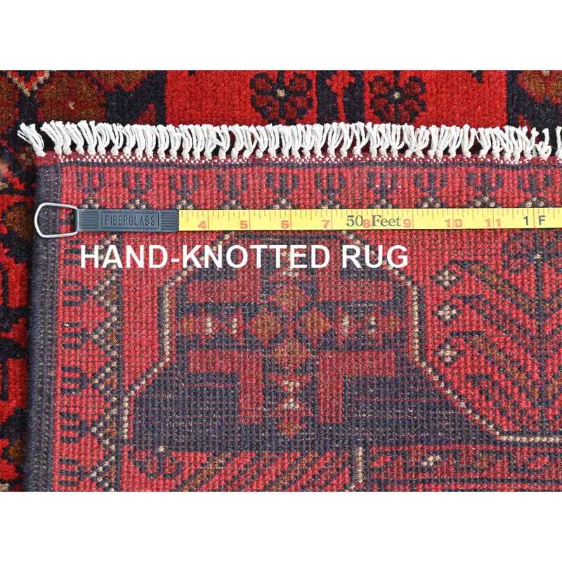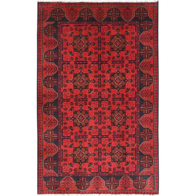 4’1″x6’3″ Candy Red, Afghan Andkhoy with Elephant Feet Design, Pure Wool, Hand Knotted Oriental Rug Sh85110