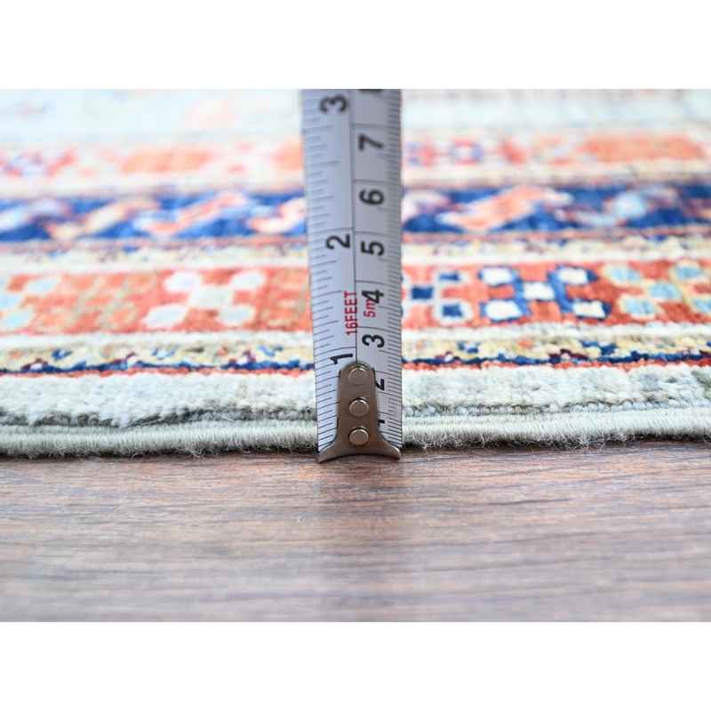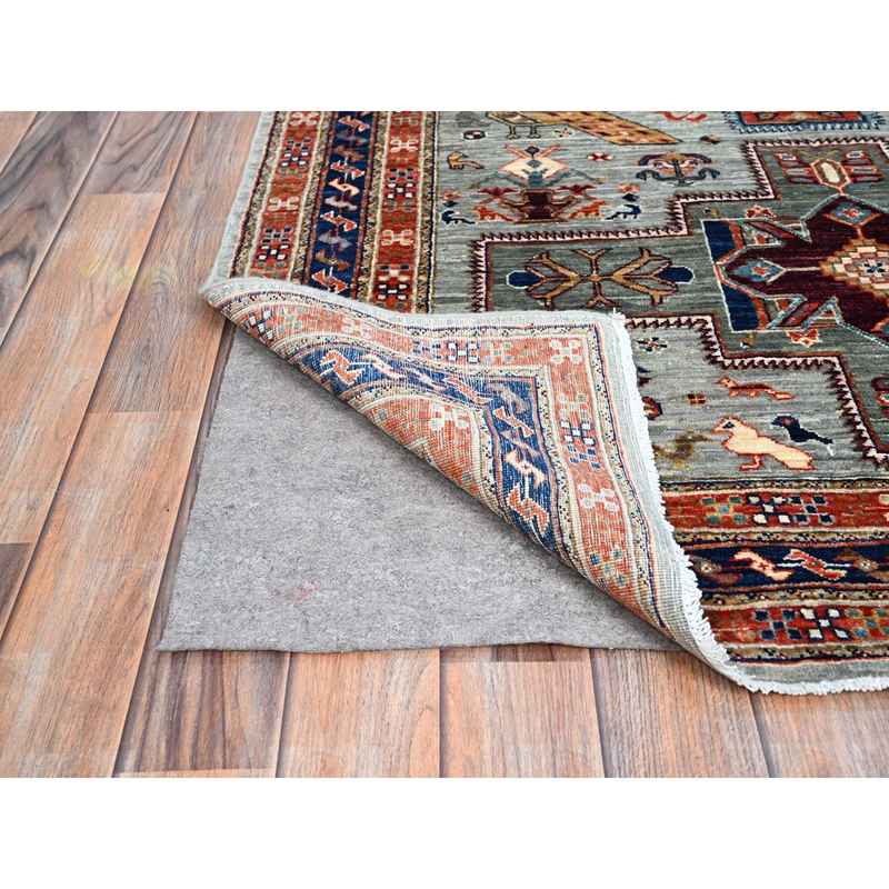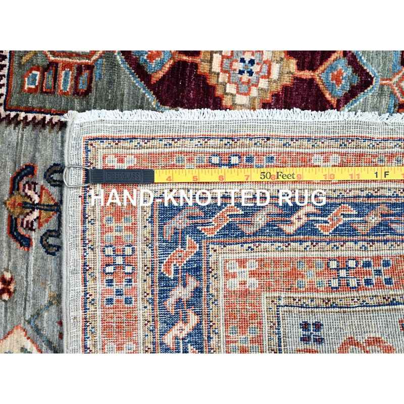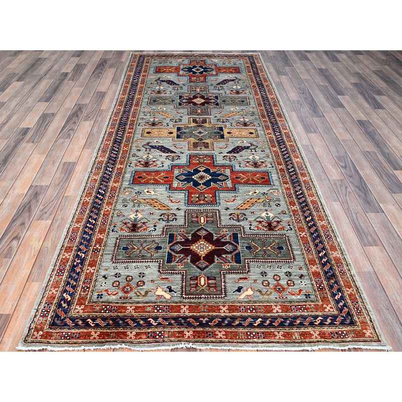 4’1″x9’10” Misty Gray, Natural Dyes, Hand Knotted Densely Woven, Pure Wool, Armenian Inspired Caucasian Design, 200 KPSI, Runner Oriental Rug Sh146