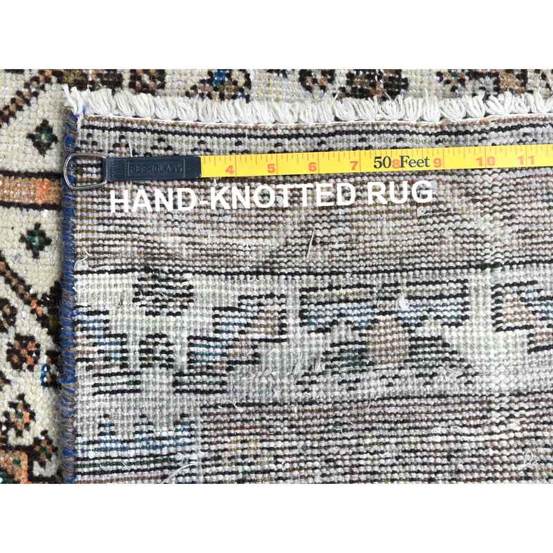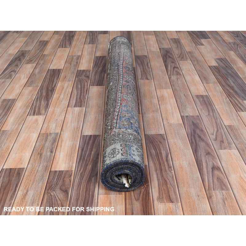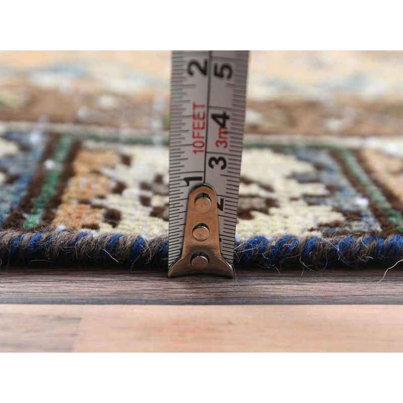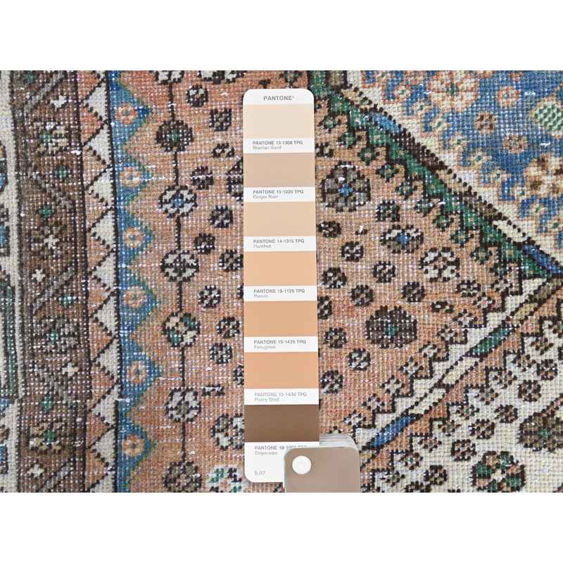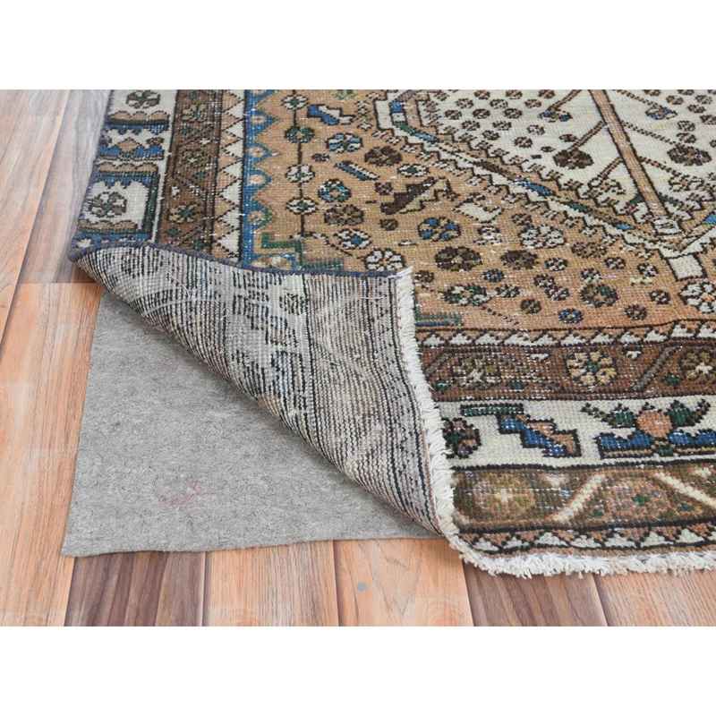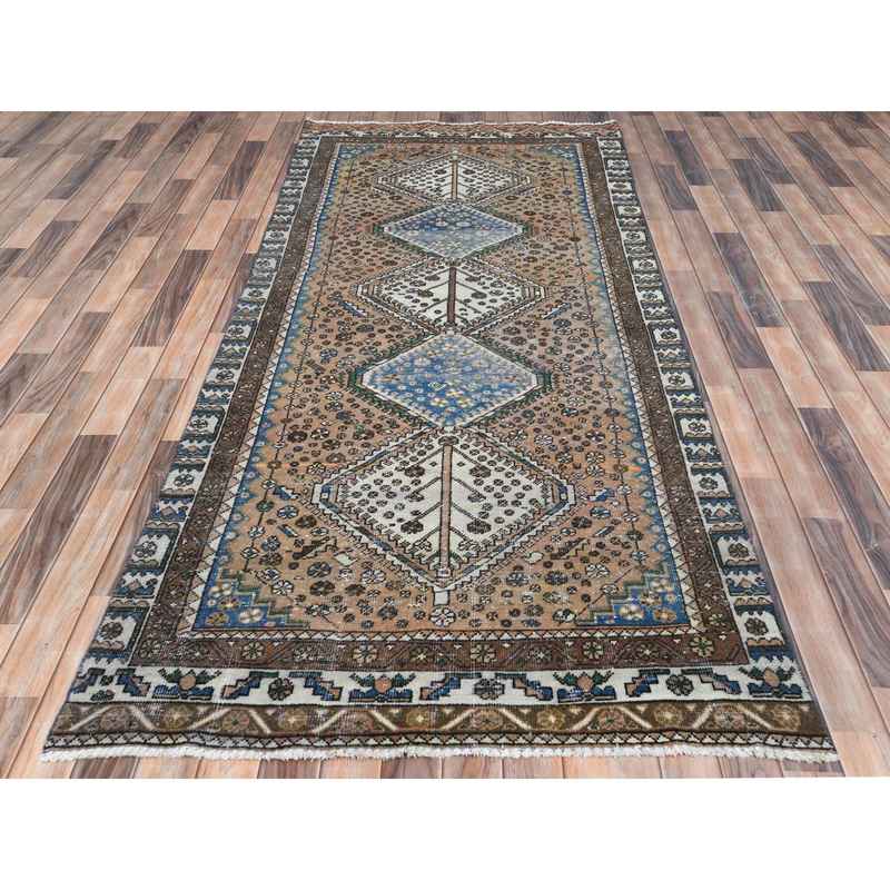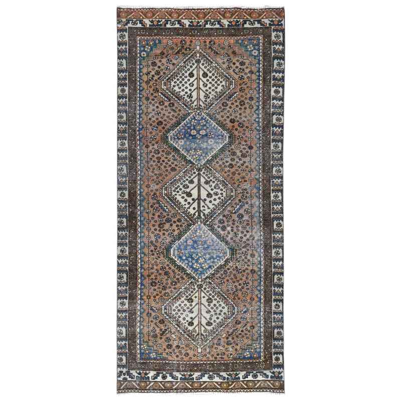 4’1″x9’10” Walnut Brown, Distressed Look Worn Wool Hand Knotted, Vintage Persian Shiraz Cropped Thin, Wide Runner Oriental Rug Sh81074