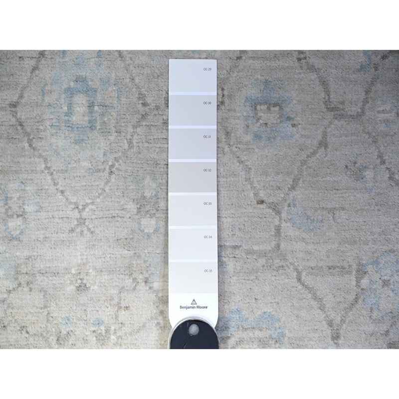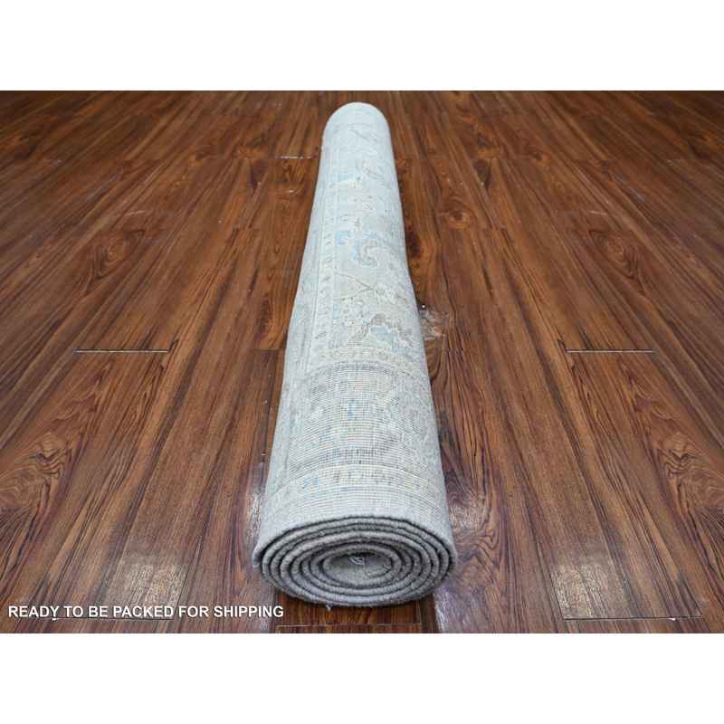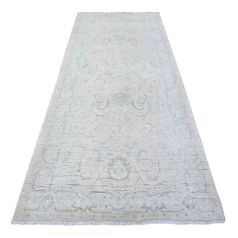 4’1″x9’9″ Fossil Gray, Pure Wool, White Wash Peshawar, Vegetables Dyes, Hand Knotted, Wide Runner Oriental Rug sh88421