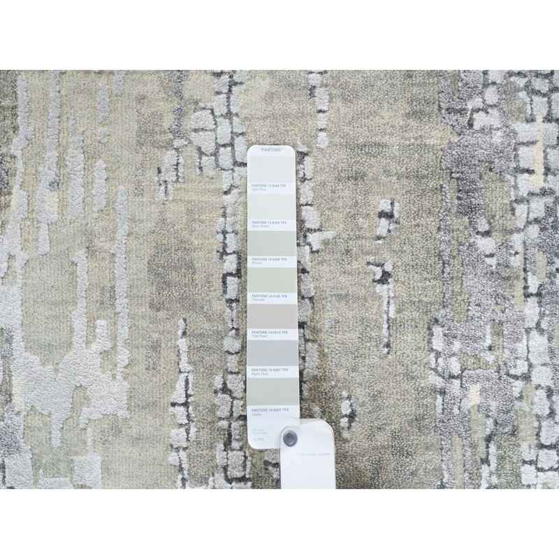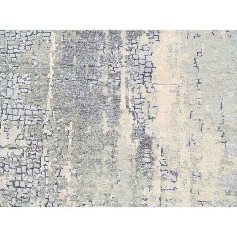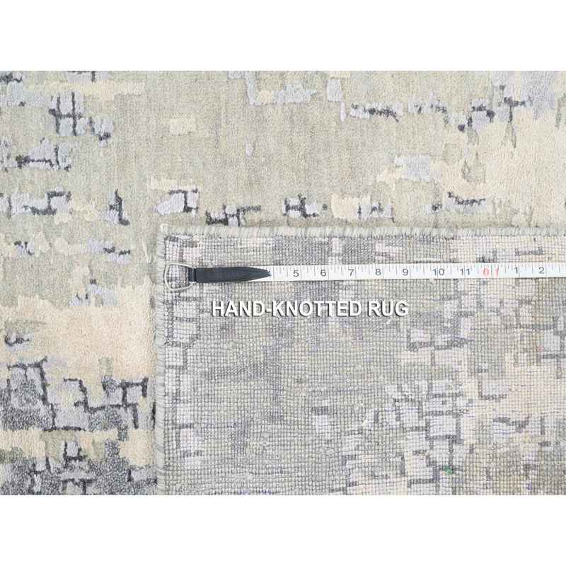 4’1″x9’9″ Wool and Silk Abstract with Mosaic Design Gray Hand Knotted Persian Knot Oriental Runner Rug Sh63062