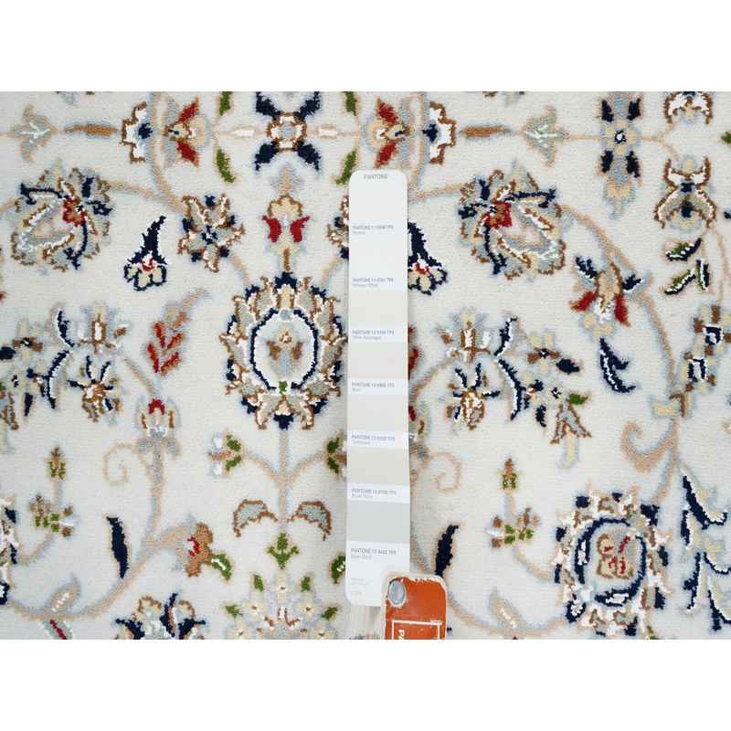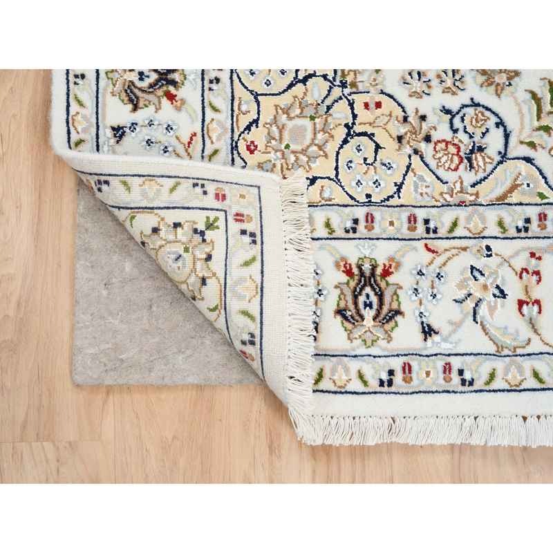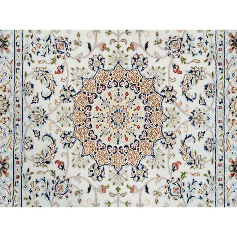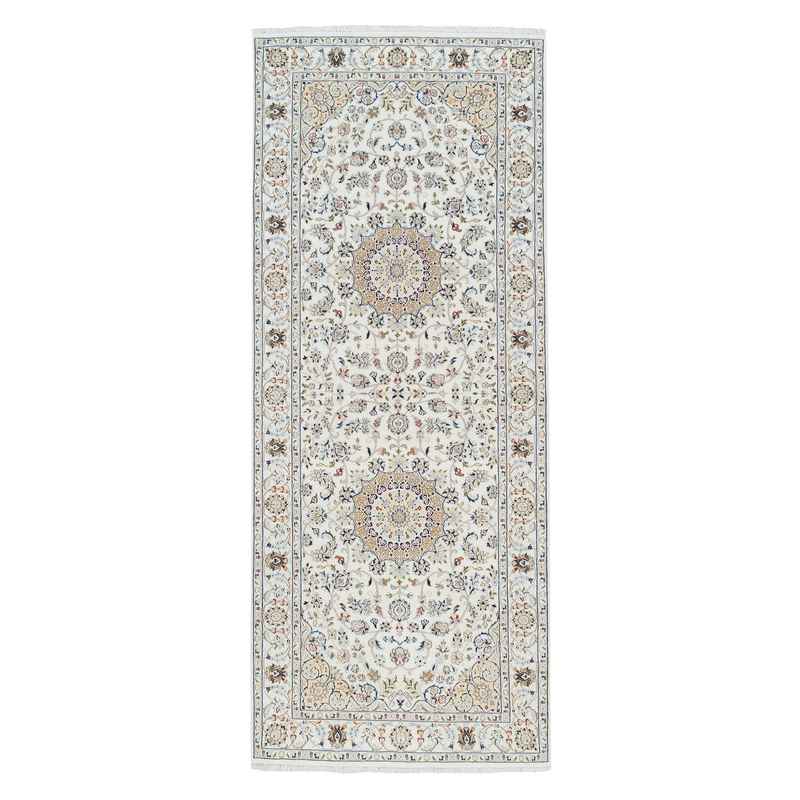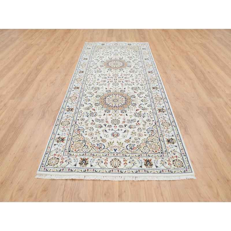 4’2″x10’1″ Ivory, Nain with Center Medallion Flower Design, 250 KPSI Wool Hand Knotted, Wide Runner Oriental Rug Sh63964