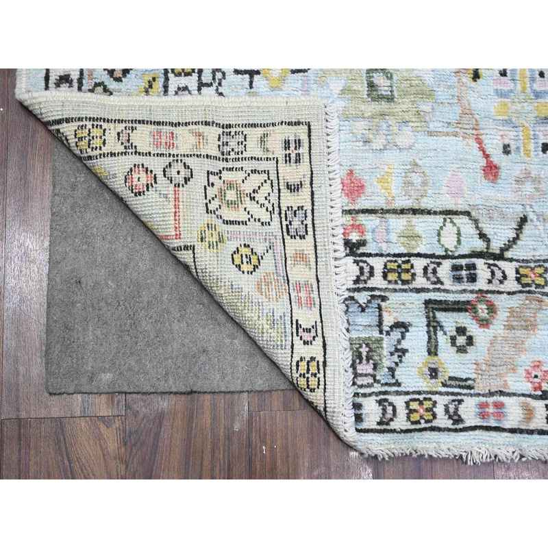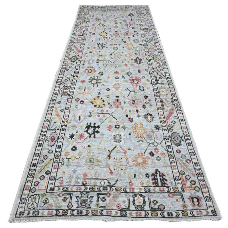 4’2″x12′ Powder Blue, Angora Oushak, Hand Knotted, Afghan Vegetable Dyes, Rural Floral Design, Wool Weft, Wide Runner Oriental Rug Sh89565