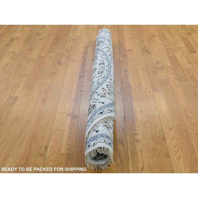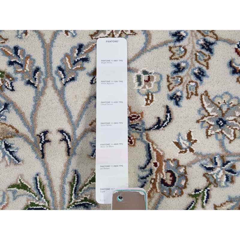 4’2″x4’2″ Ivory Wool And Silk 250 Kpsi All Over Design Nain Hand-Knotted Oriental Round Rug Sh59413