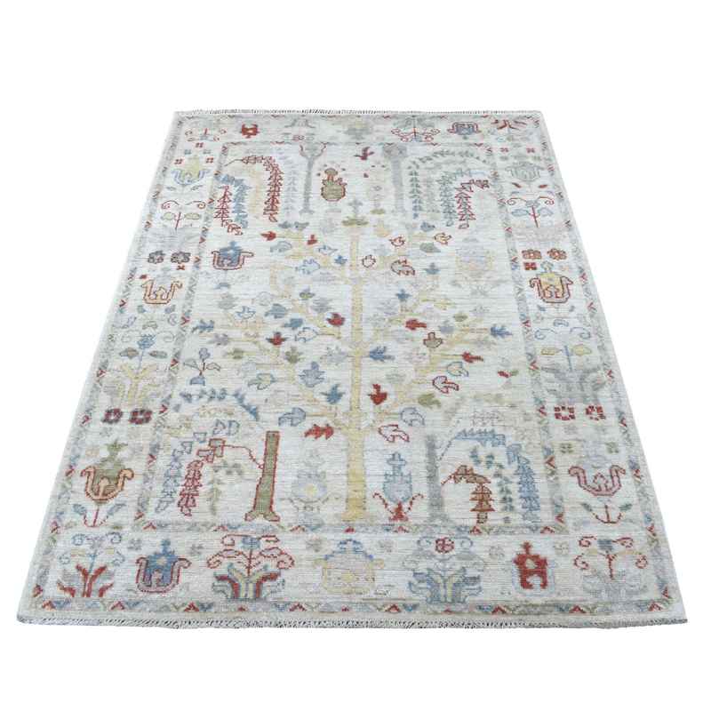 4’2″x6″ Hand Knotted Ivory Angora Oushak With Willow Tree Design Pure Wool Oriental Runner Rug Sh67076