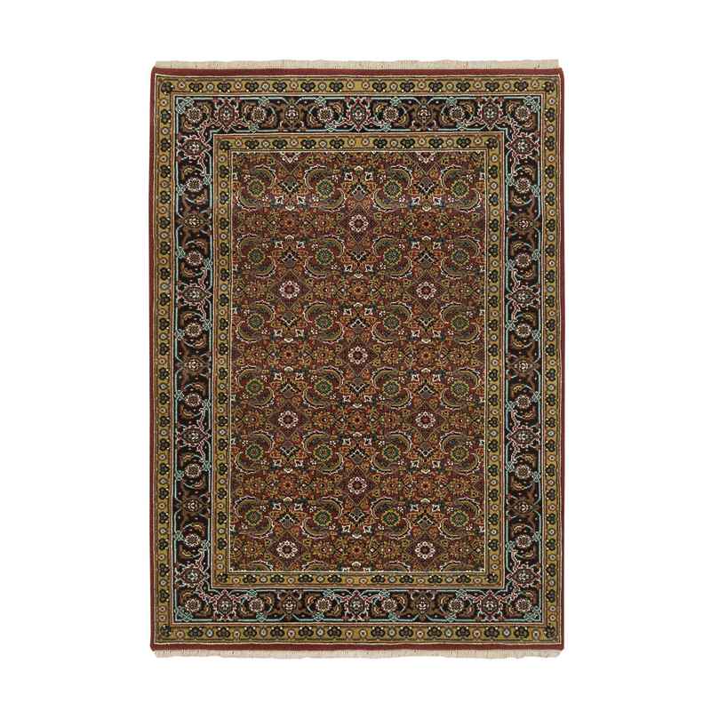 4’2″x6′ Red Herati All Over Fish Design Thick and Plush, 175 KSPI Hand Knotted Wool Oriental Rug Sh65119
