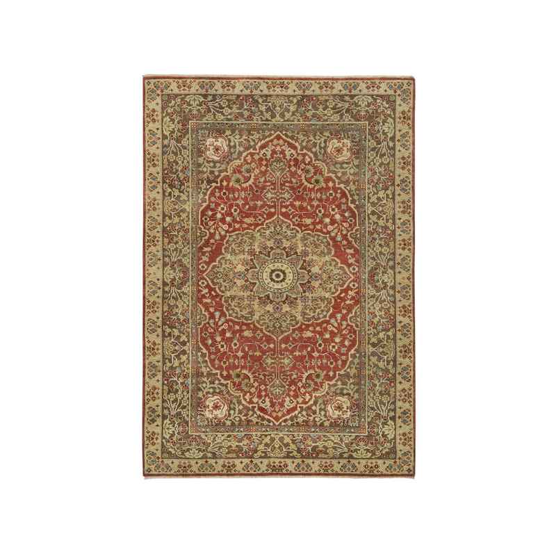 4’2″x6’1″ Rust Red, All Wool, Plush Pile, Antiqued Tabriz Haji Jalili Design, Fine Weave, Natural Dyes, Hand Knotted, Oriental Rug Sh65746