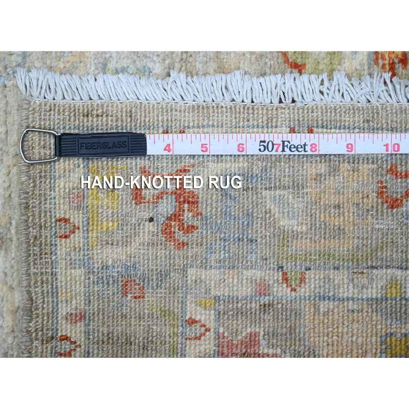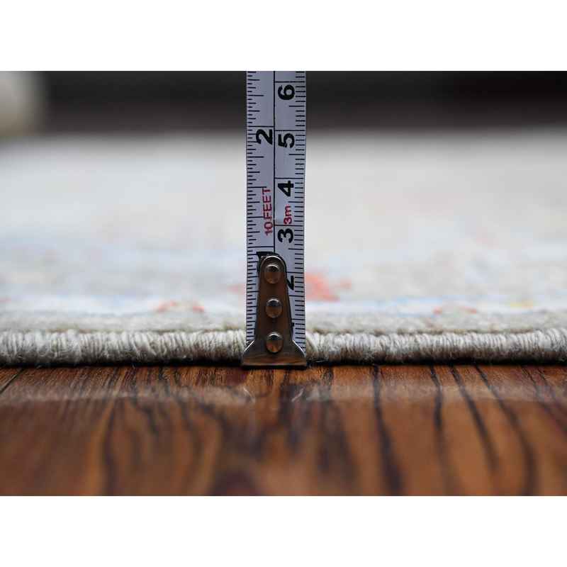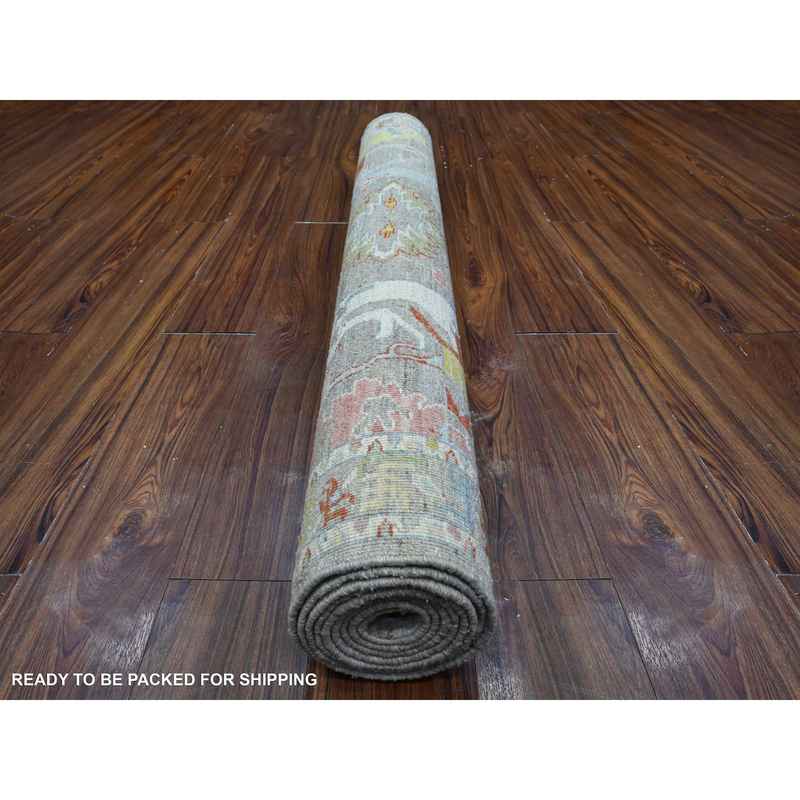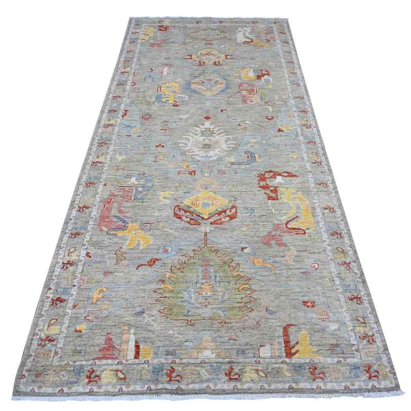 4’2″x9’6″ Concrete Silver, All Natural Wool, Hand Knotted Fine Aryana With All Over Geometric Leaf Design, Vegetable Dyes Peshawar, Wide Runner Oriental Rug Sh89495