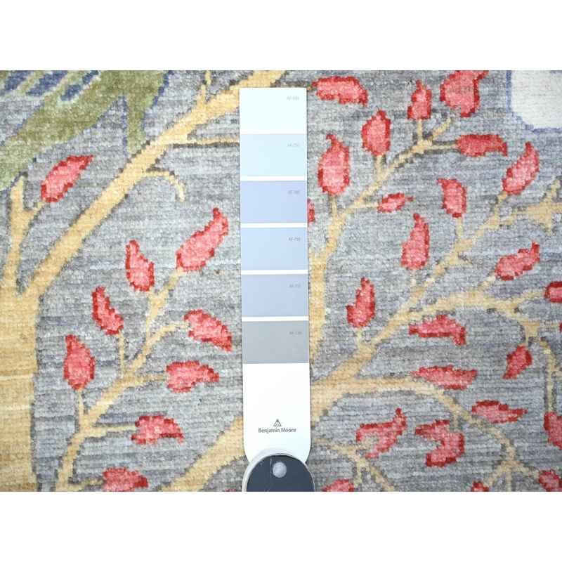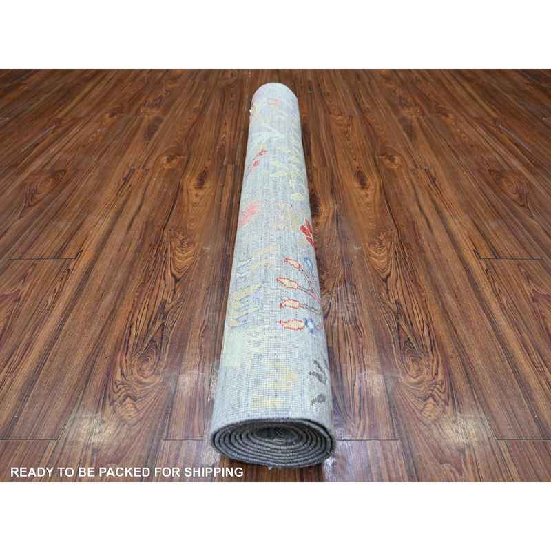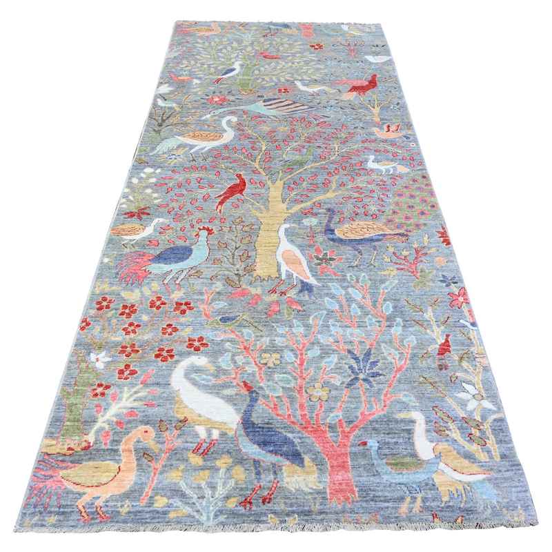 4’2″x9’8″ Ice Gray, Afghan Peshawar with Birds of Paradise, Natural Dyes Extra Soft Wool, Hand Knotted, Runner Oriental Rug Sh88225