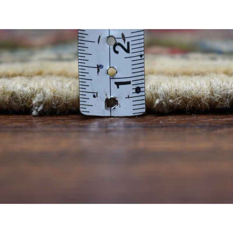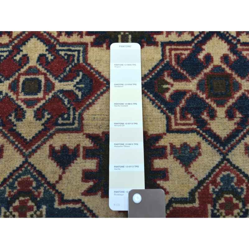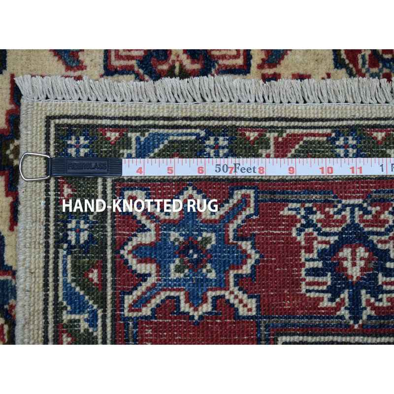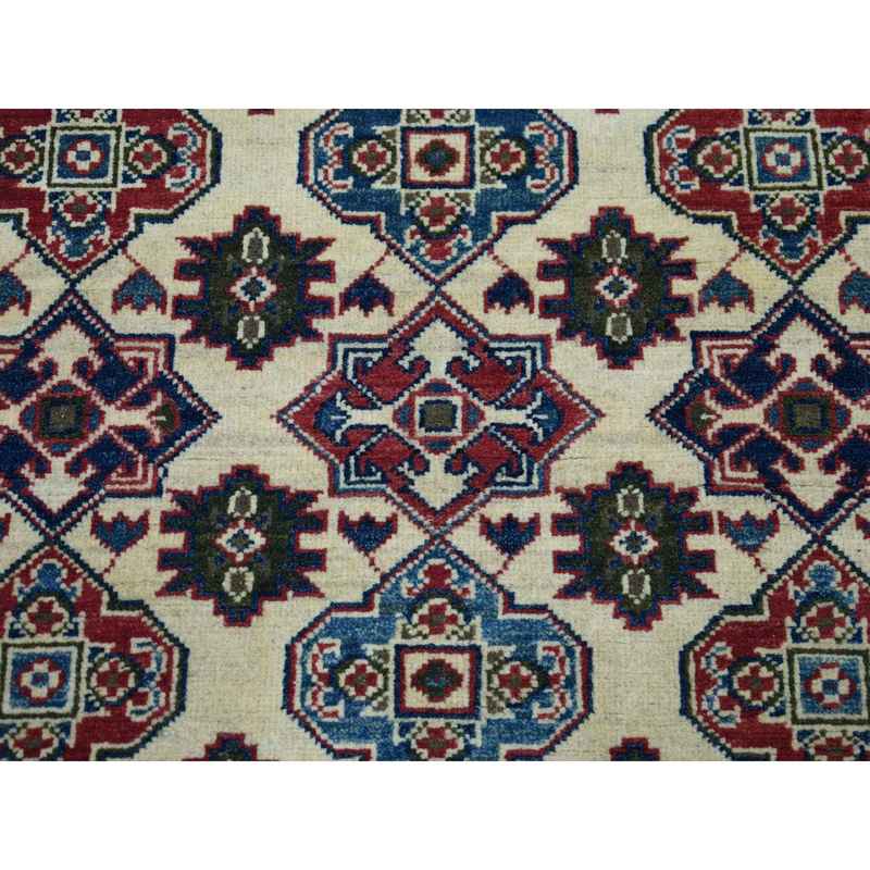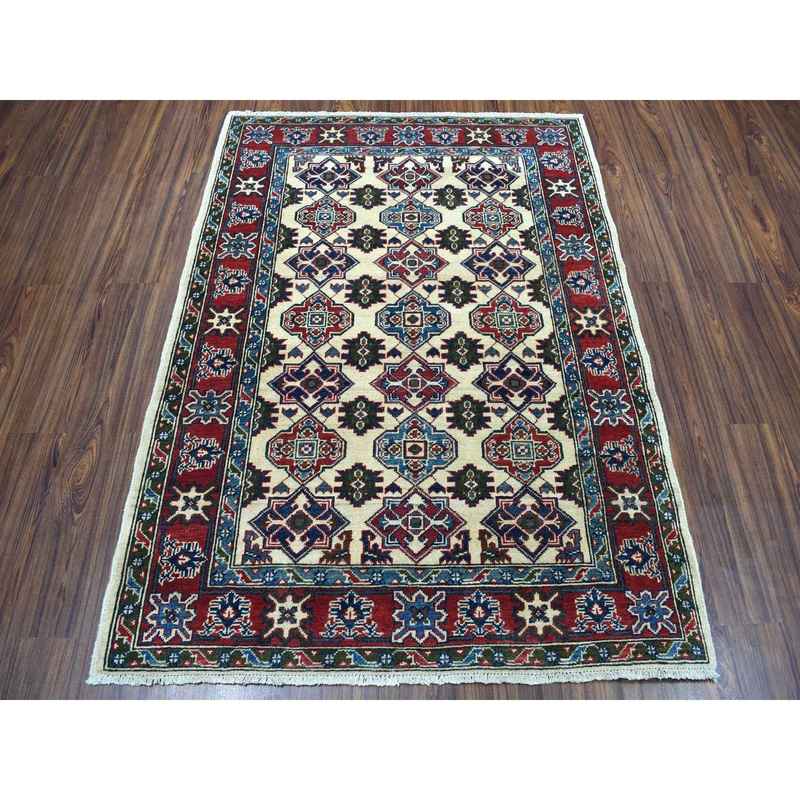 4’3″x5’7″ Ivory Kazak Pure Wool Geometric Design Hand-Knotted Oriental Rug Sh50648