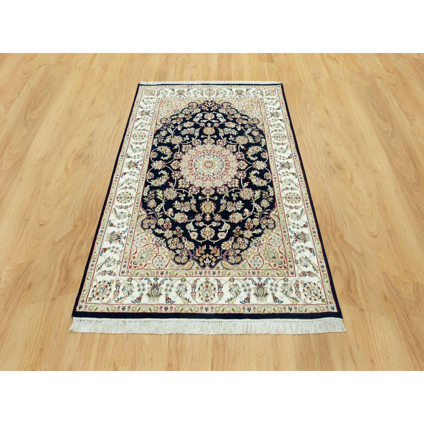 4’3″x6’3″ Gale Force Blue, 250 KPSI, Nain Pure Wool Central Medallion Floral Design Denser Weave, Hand Knotted, Oriental Rug Sh90619