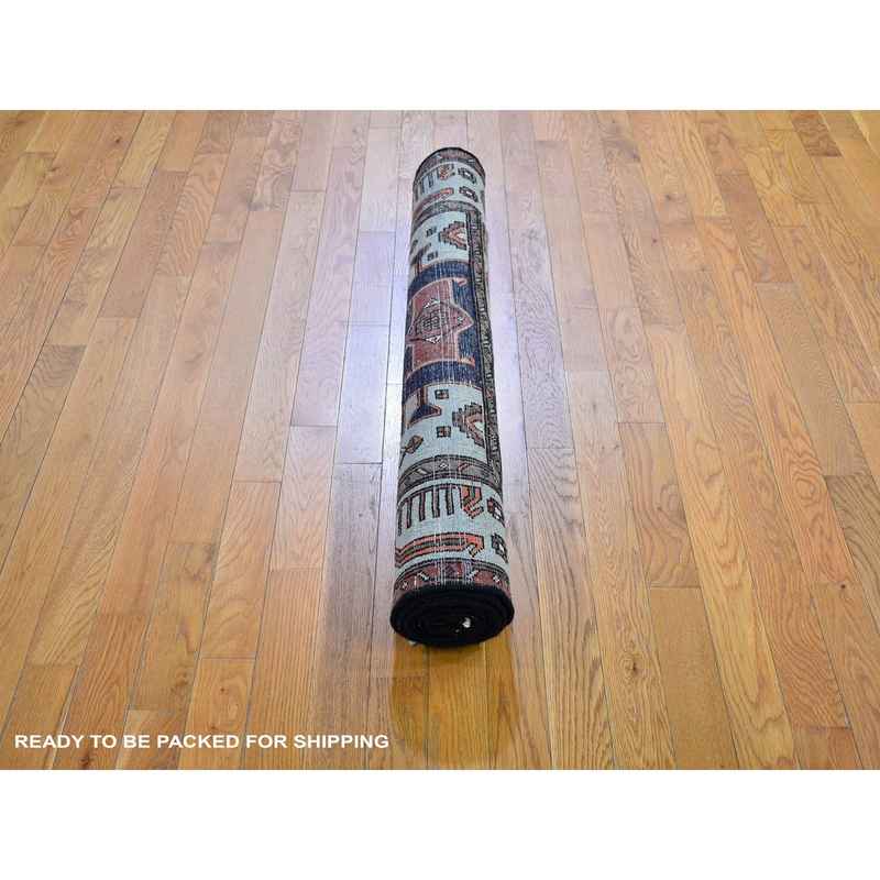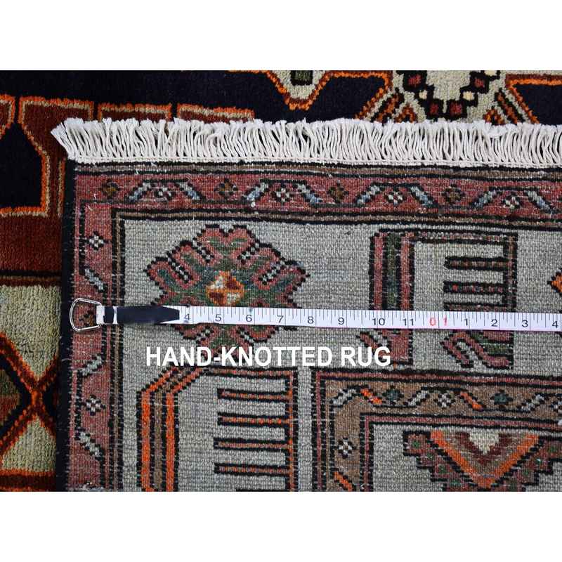 4’3″x6’4″ Midnight Blue New Persian Hamadan Geometric Design Pure Wool Hand Knotted Oriental Rug Sh59794