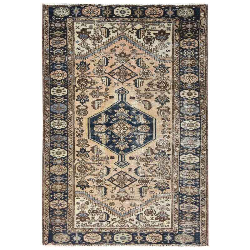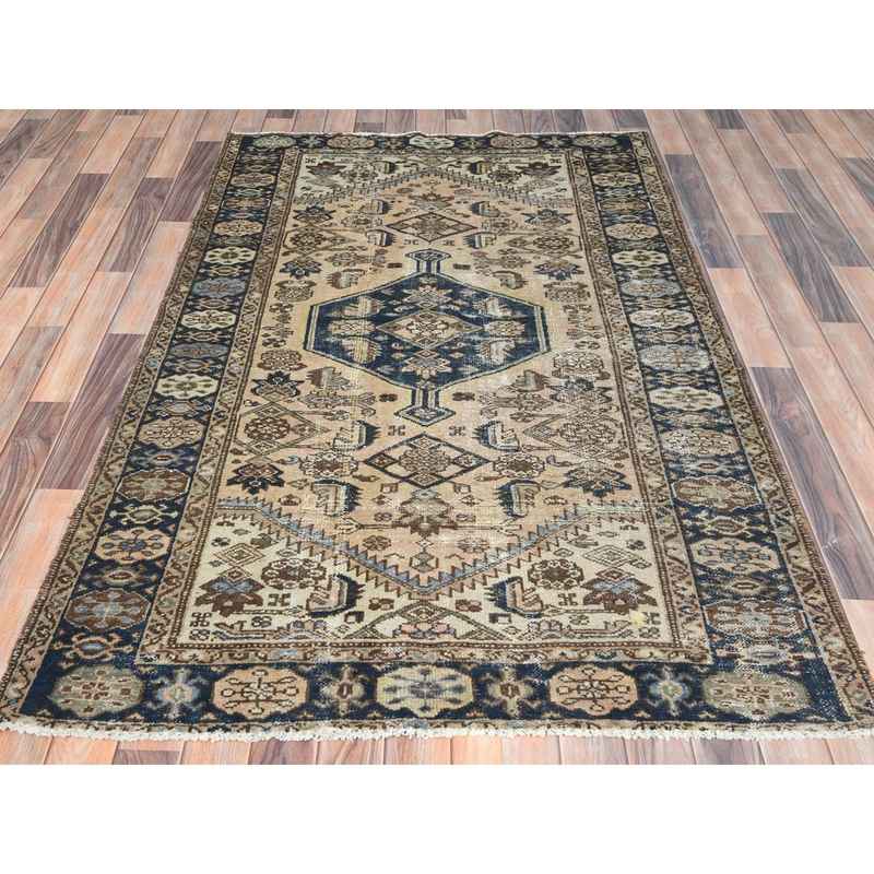 4’3″x6’5″ Light Brown, Worn Wool Hand Knotted, Vintage Northwest Persian Cropped Thin Distressed Look, Oriental Rug Sh81208