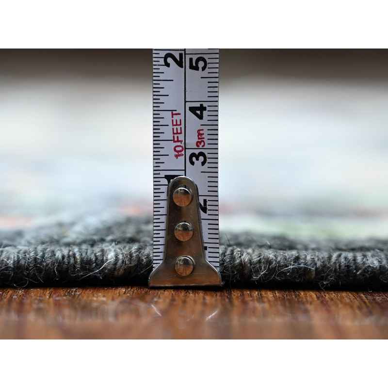 4’4″x9’6″ Charcoal Black, Afghan Angora Oushak with Pop of Color, Geometric Leaf Design, Vegetable Dyes, Soft Wool, Hand Knotted Wide Runner Oriental Rug Sh73295