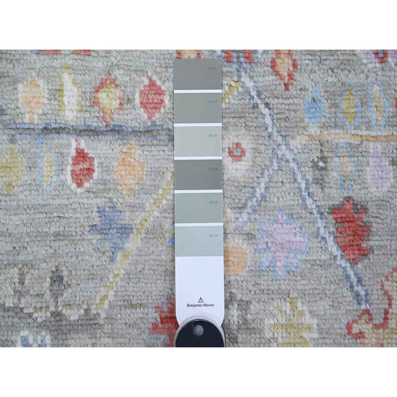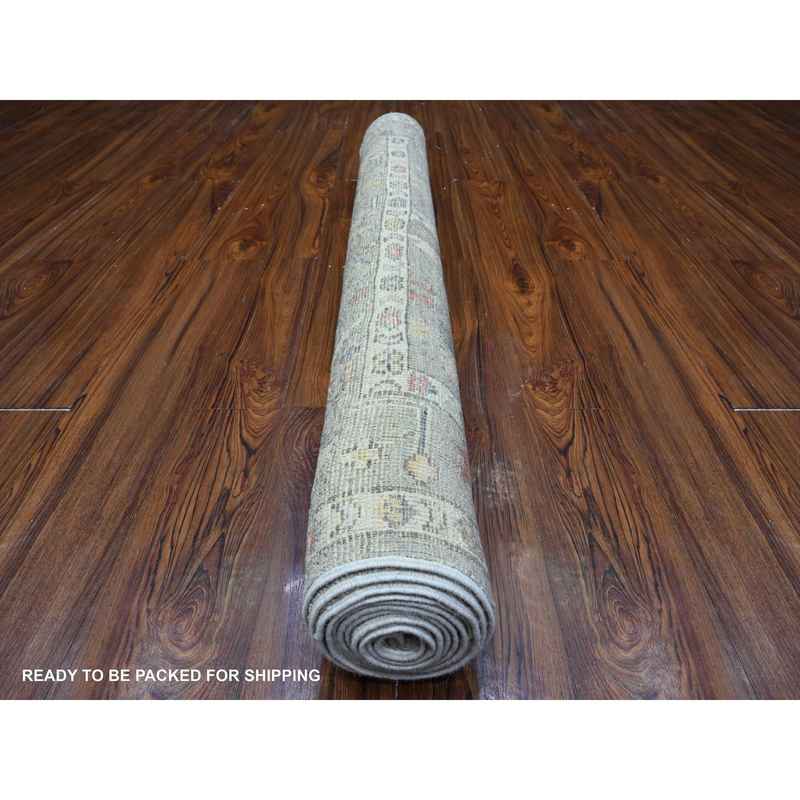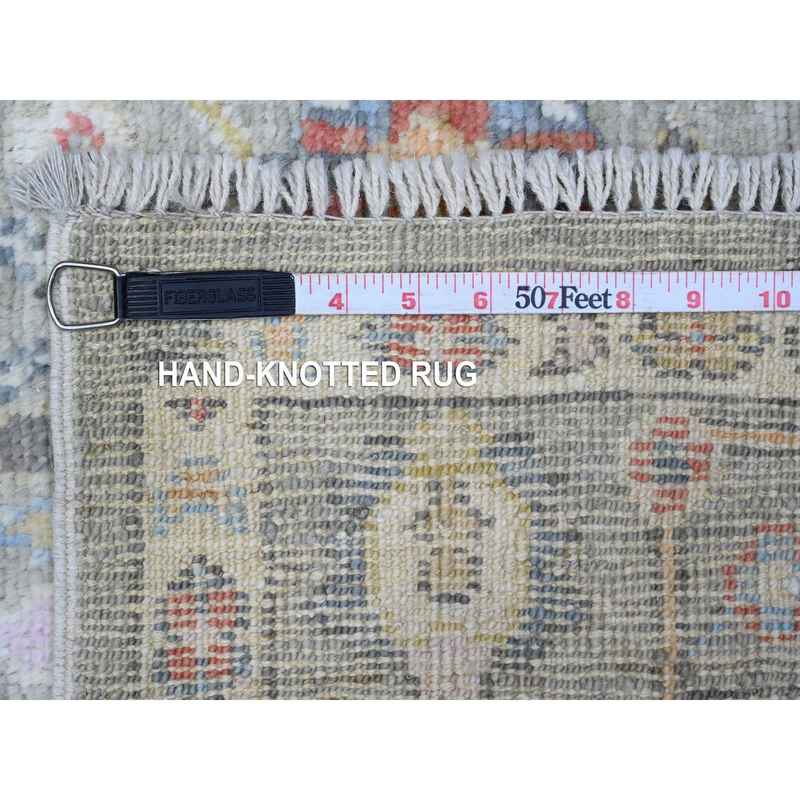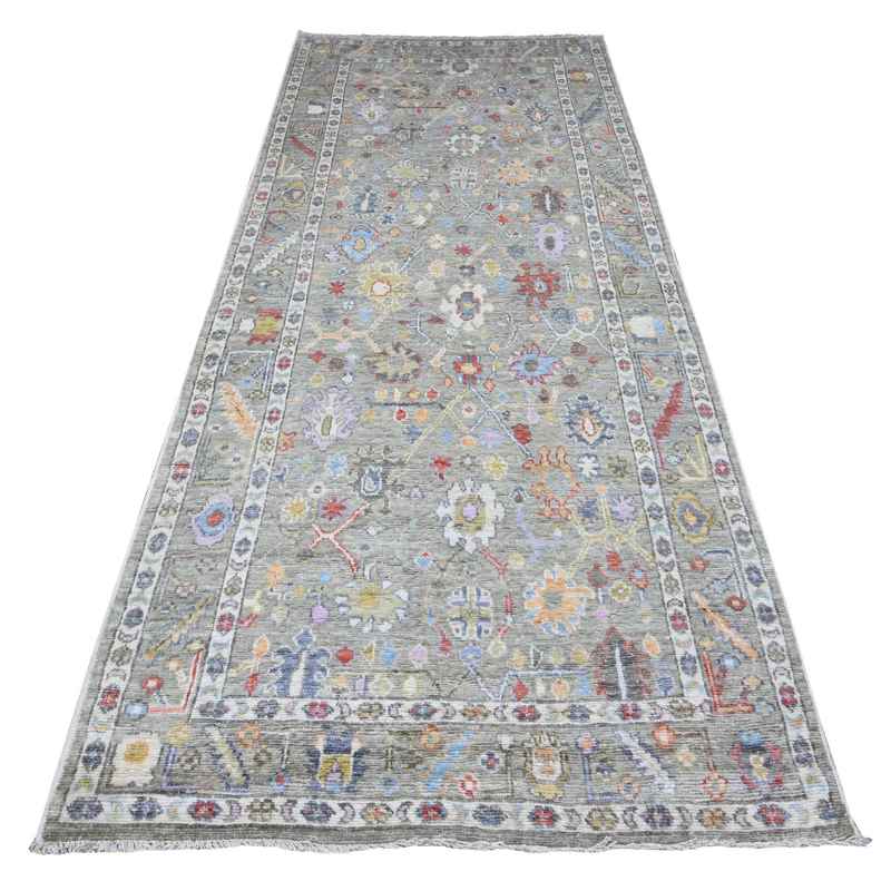 4’5″x10′ Swamp Green, Extra Soft Wool Weft, Afghan, Hand Knotted Angora Oushak, Vegetable Dyes, Colorful Tribal Flower And Leaf Medallions All Over Design, Wide Runner Oriental Rug Sh89647
