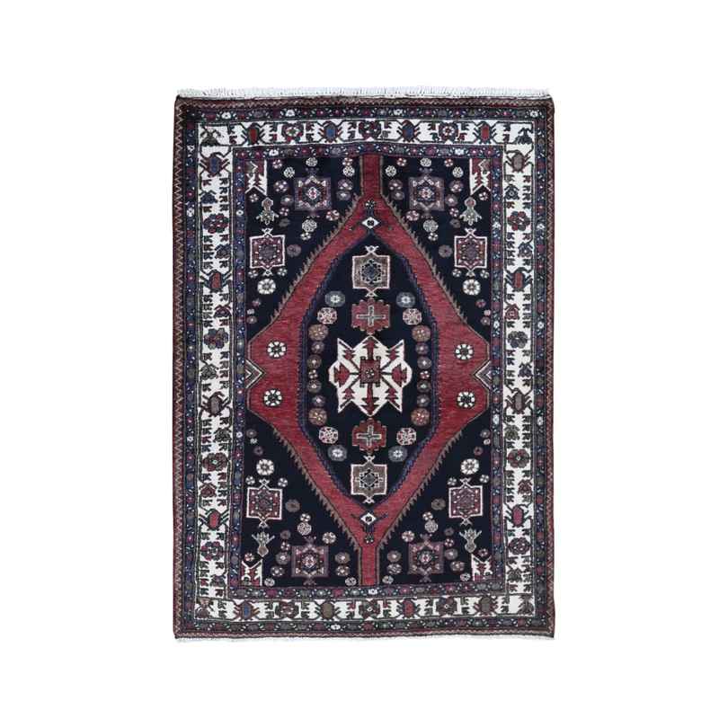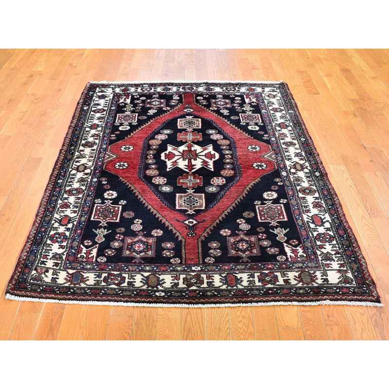 4’6″x6’6″ Navy Blue New Persian Mazlagan Pure Wool Hand Knotted Oriental Rug Sh59567