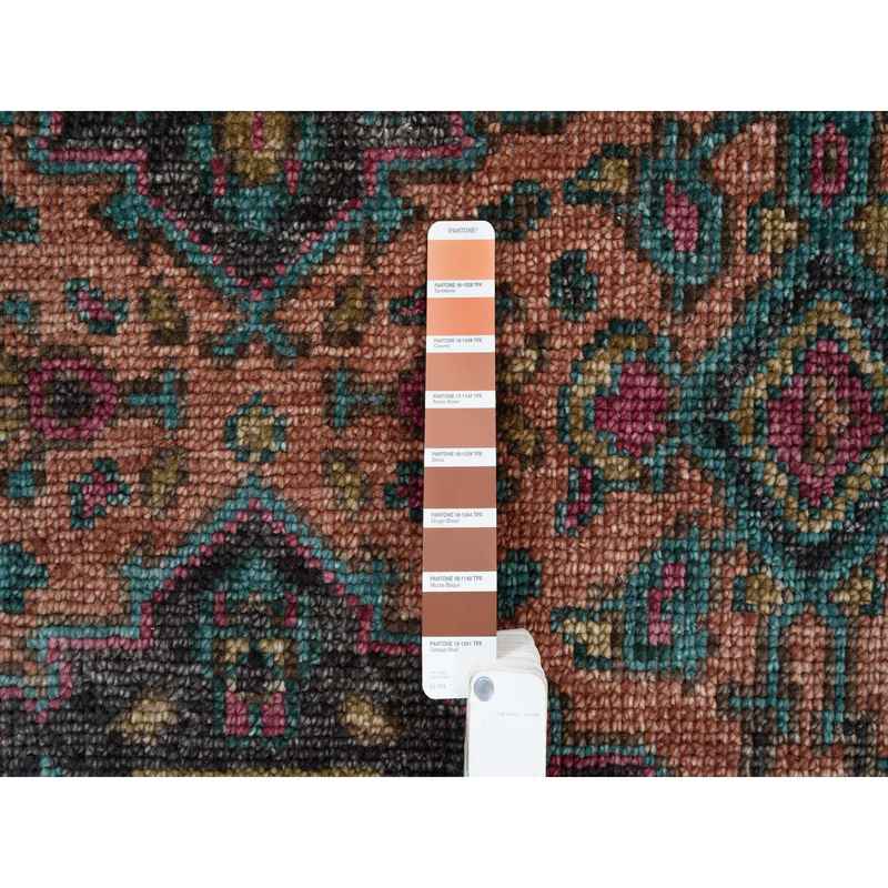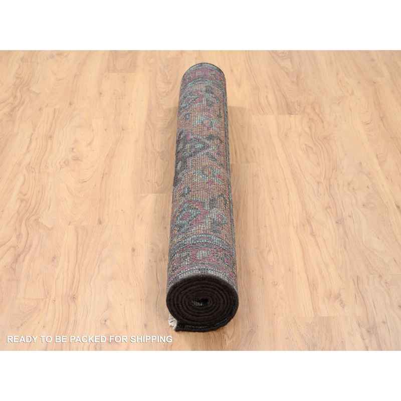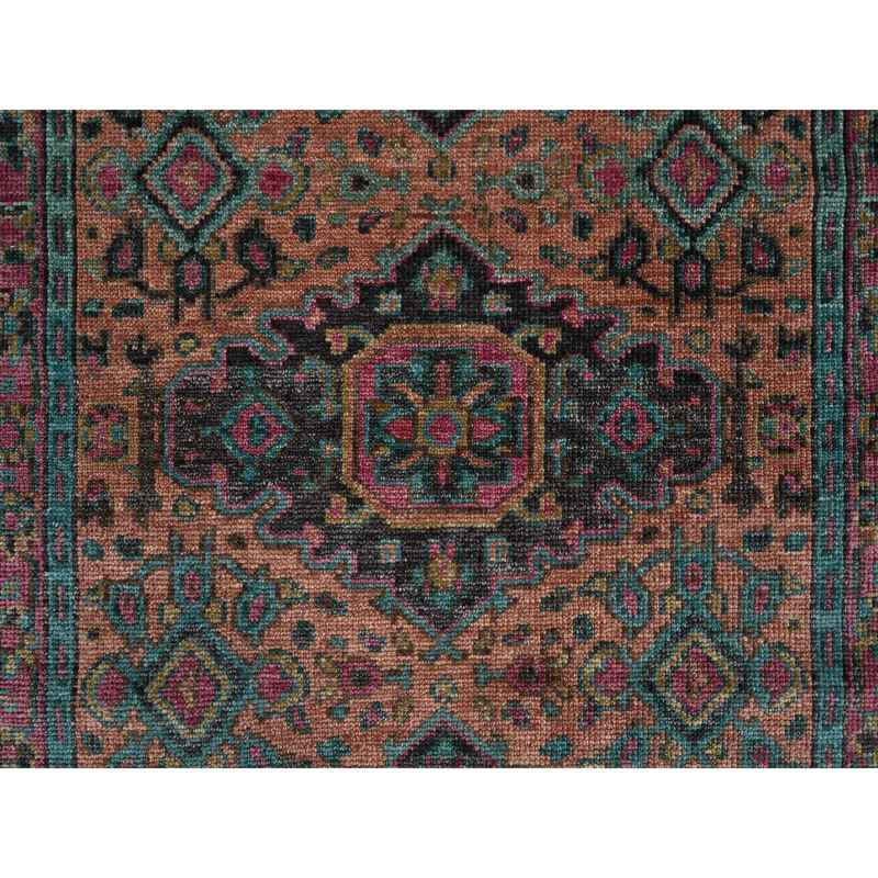 4’9″x8’4″ Honey Brown with Purple Border, Supple Collection, Thick and Plush, Anatolian Design, Hand Knotted, Pure Wool Oriental Rug Sh63781
