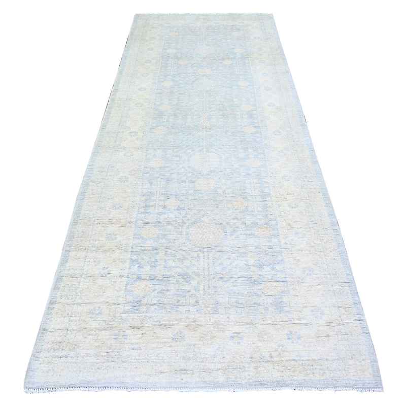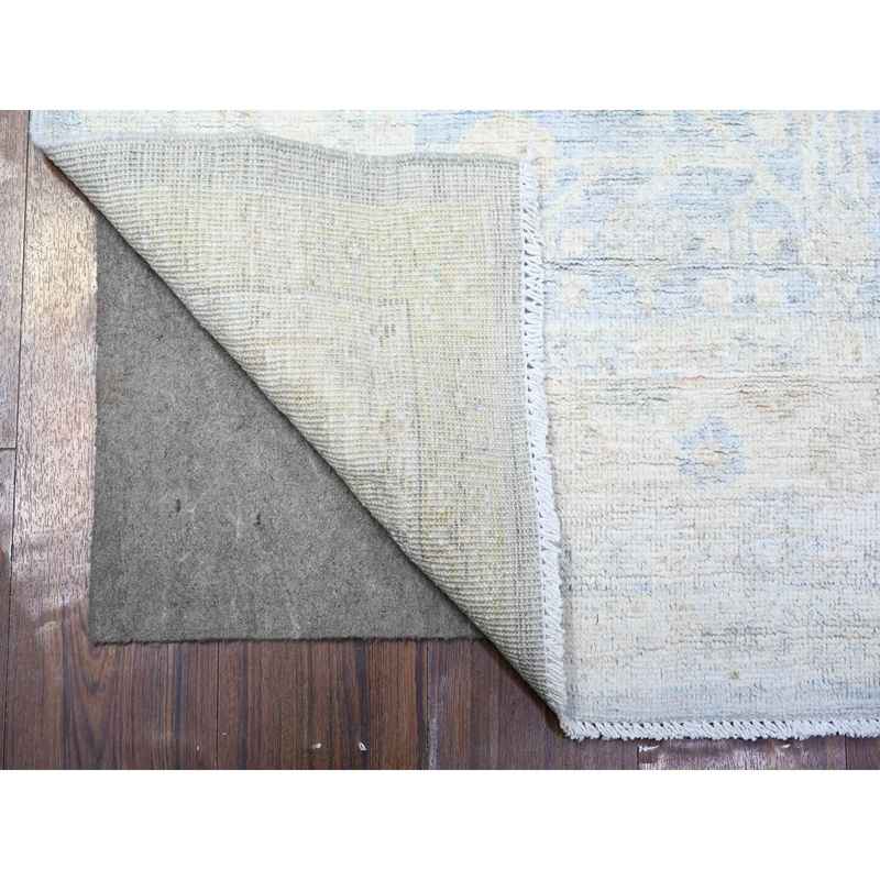 4’x10′ Oxford Gray, White Wash Pomegranate Design Samarkand Khotan Rug, Natural Wool, Hand Knotted, Vegetable Dyes, Densely Woven, Oriental Rug Sh74952