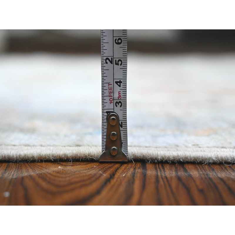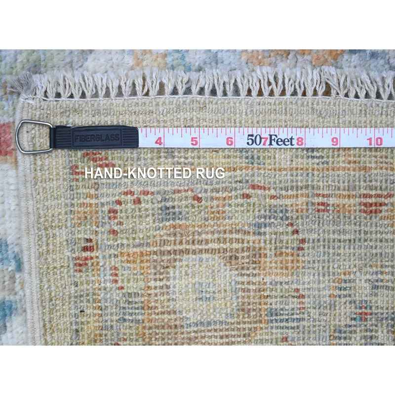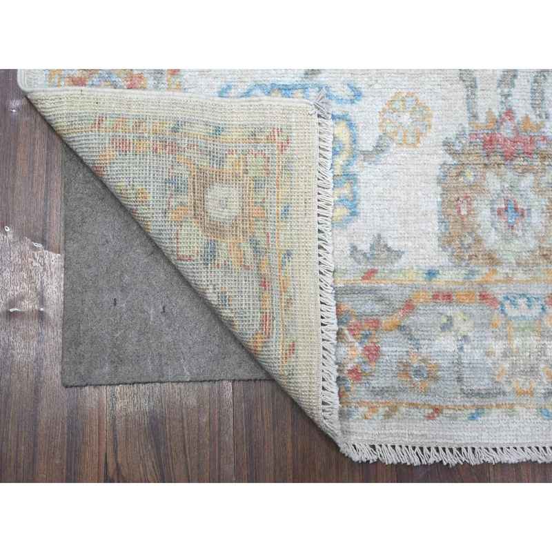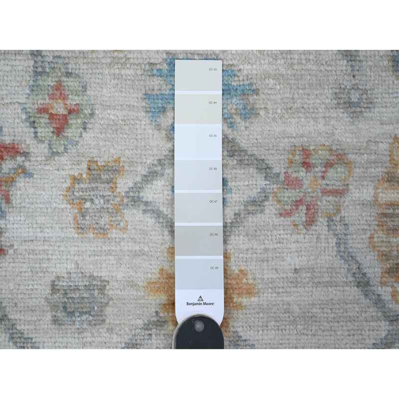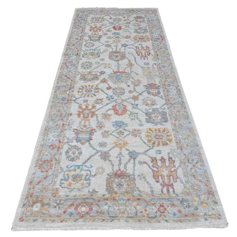 4’x10′ Silver Gray, Natural Dyes, Hand Knotted, Wool Weft, Afghan Angora Oushak, Vibrant Tribal Flower And Leaf Design, Wide Runner Oriental Rug Sh89672