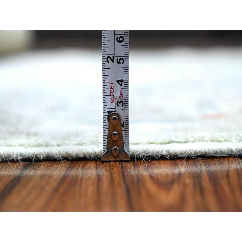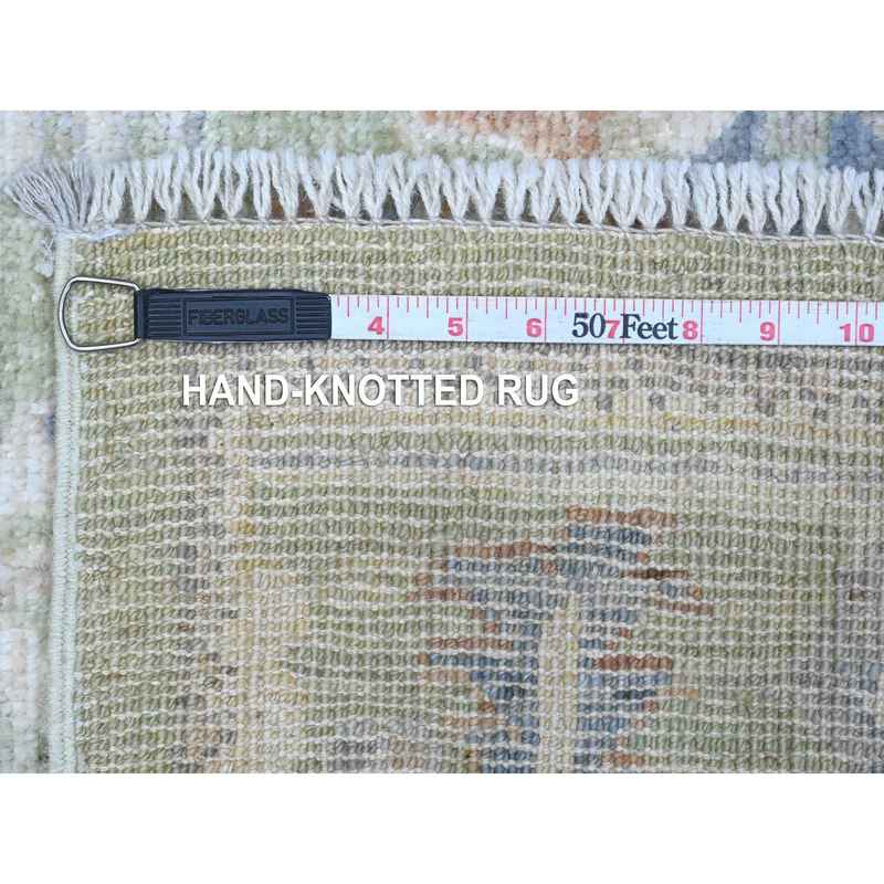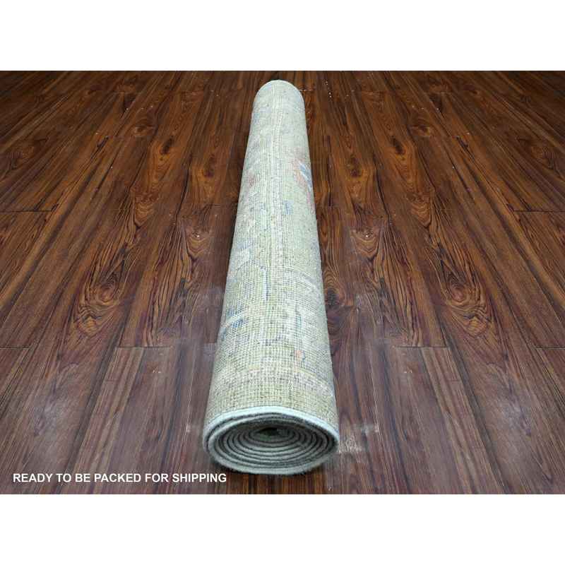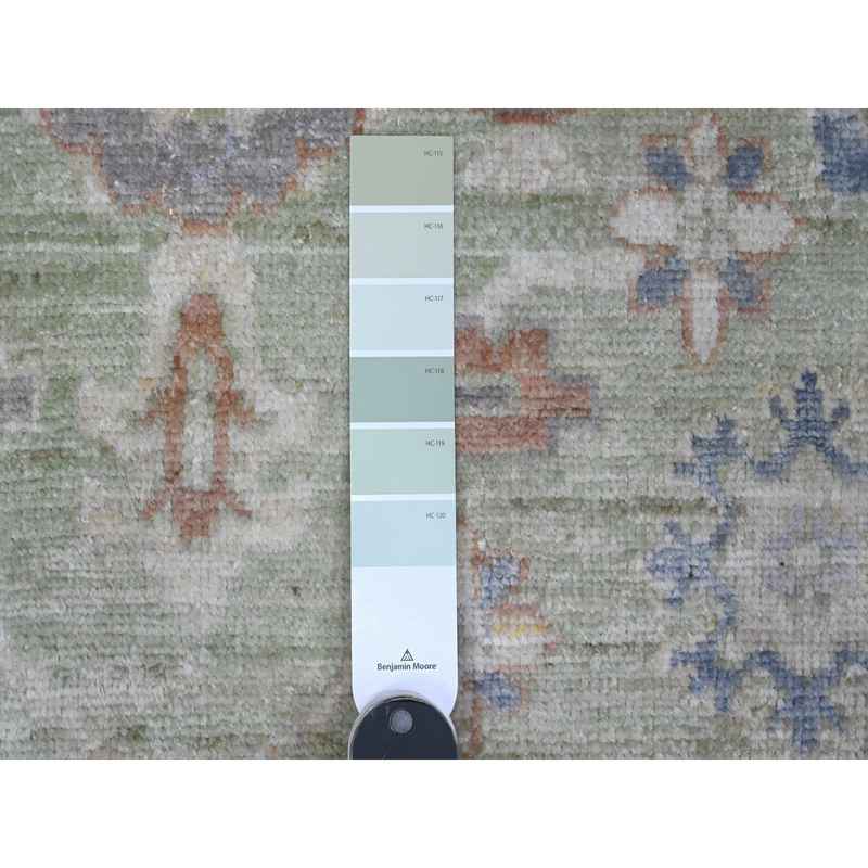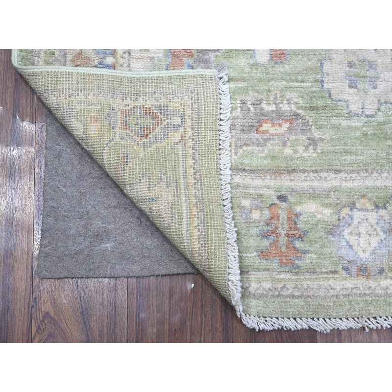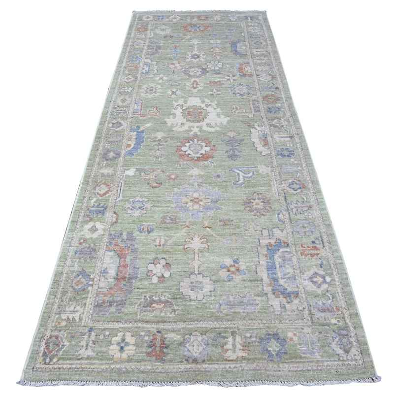 4’x10’1″ Asparagus Green, Wool Weft, Hand Knotted, Tribal Flower Medallions All Over Design, Vegetable Dyes, Afghan Angora Oushak, Wide Gallery Runner Oriental Rug Sh89289