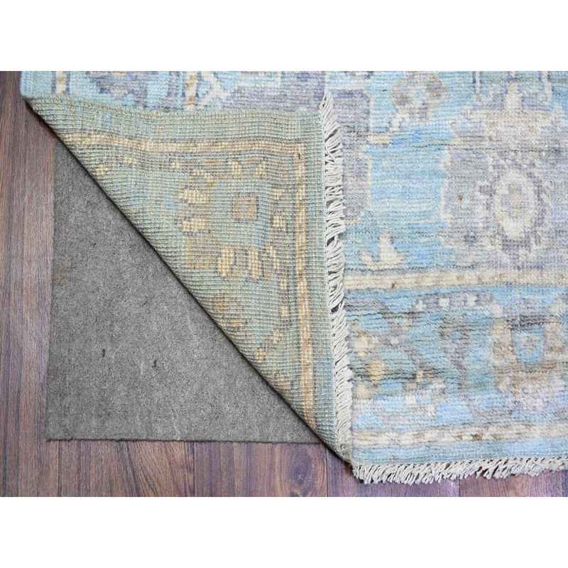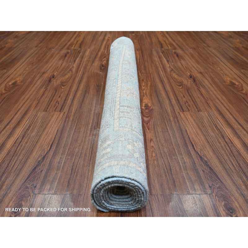 4’x10’1″ Cerulean Blue, Hand Knotted, Afghan Angora Oushak with Branch and Flower Design, Vegetable Dyes, Pure Wool, Wide Runner Oriental Rug Sh73297