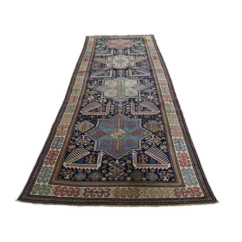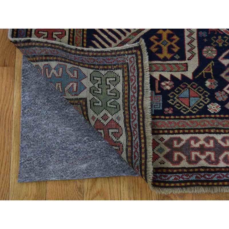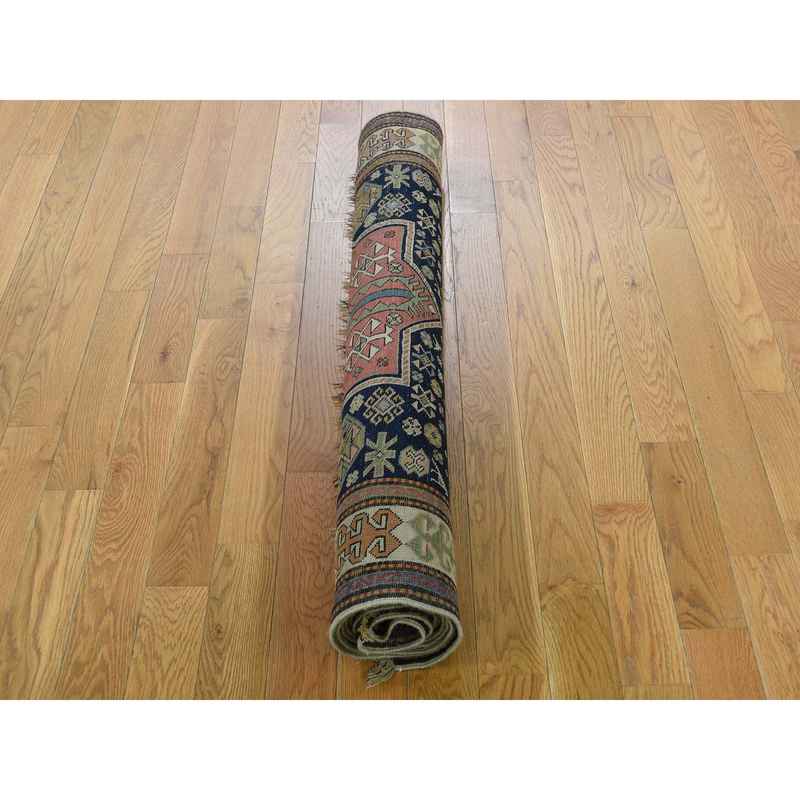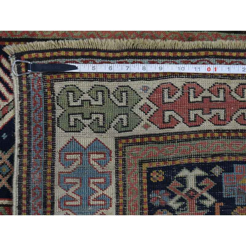 4’x10’4″ Blue Akstafa Design Antique Caucasian Wide Runner Hand-Knotted Pure Wool Oriental Rug Sh42866