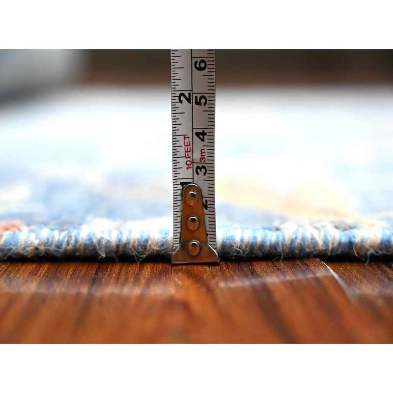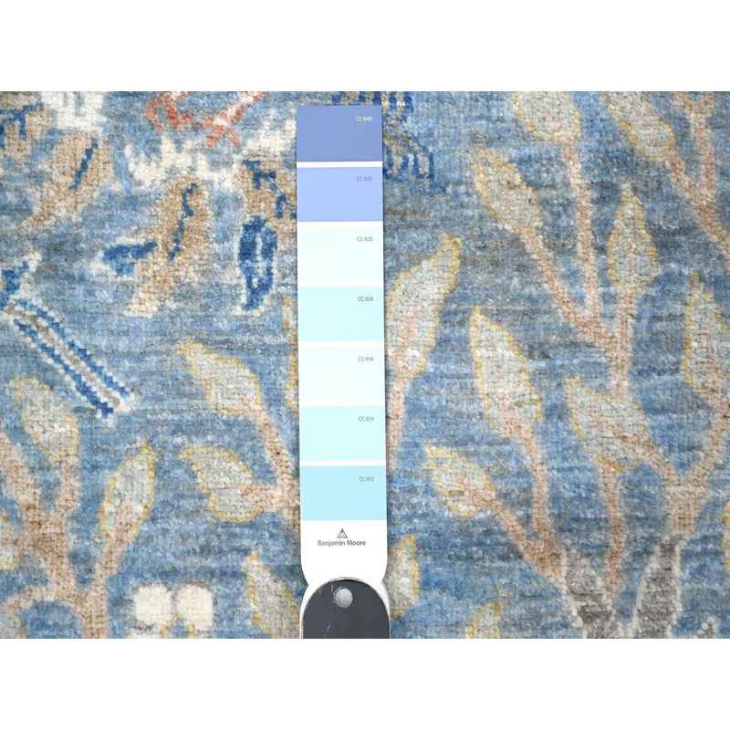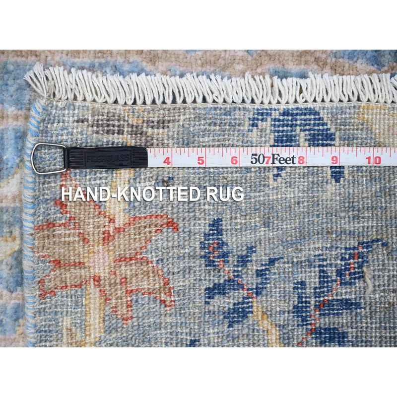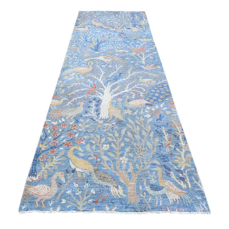 4’x11’10” Cadet Blue, Natural Dyes Extra Soft Wool, Hand Knotted Afghan Peshawar with Birds of Paradise, Wide Runner Oriental Rug Sh89074