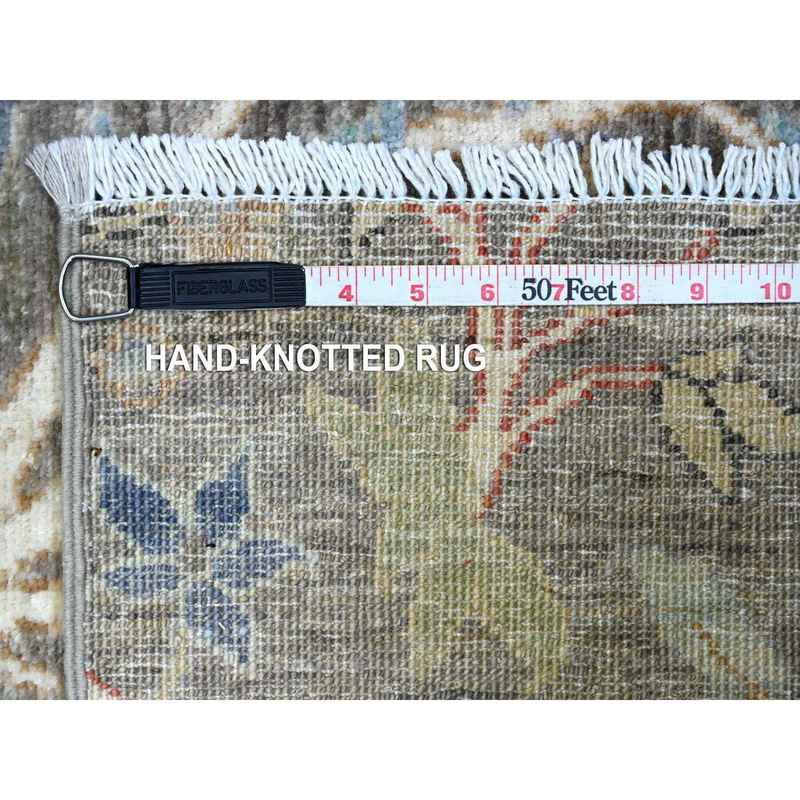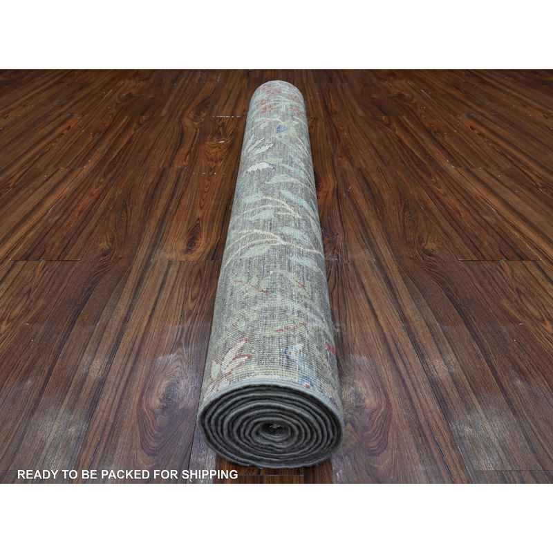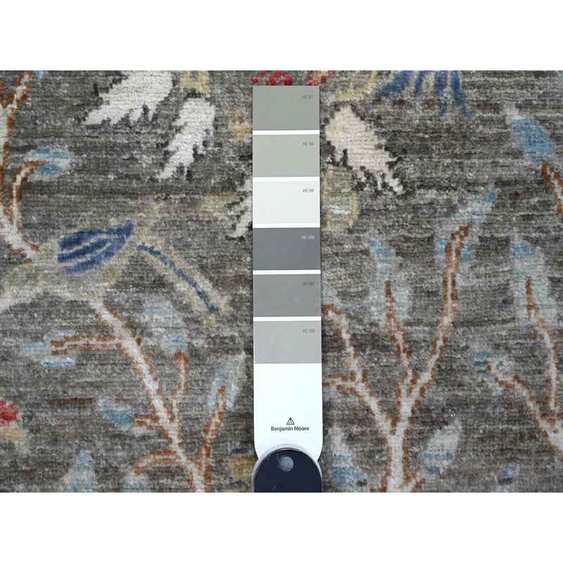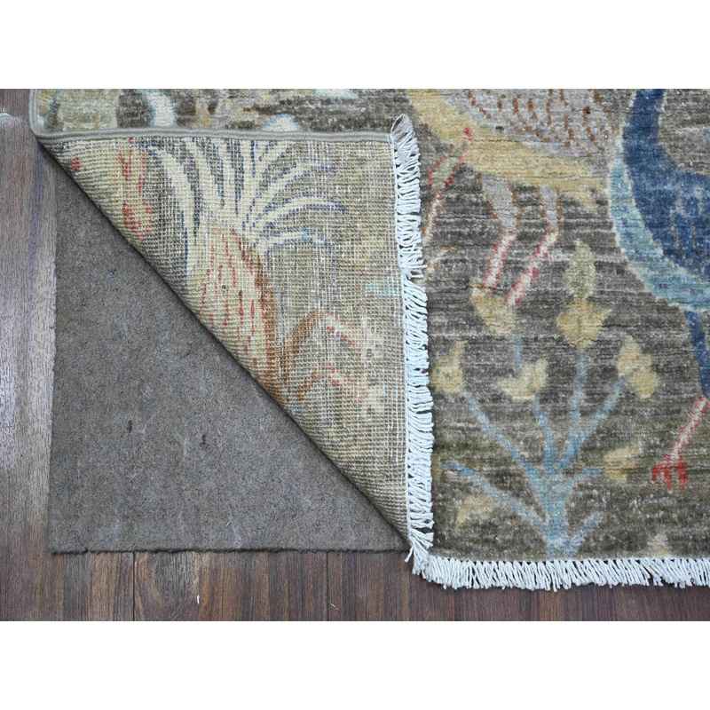 4’x11’10” Storm Gray, Vegetable Dyes 100% Wool, Hand Knotted Afghan Peshawar with Birds of Paradise, Wide Runner Oriental Rug Sh89458