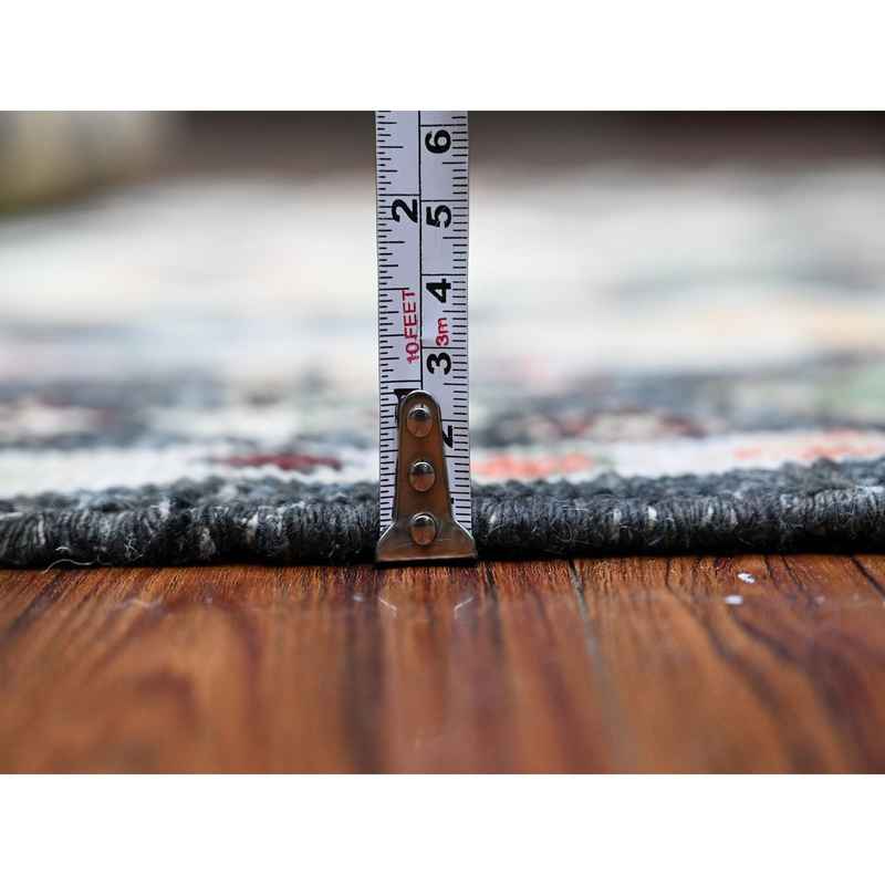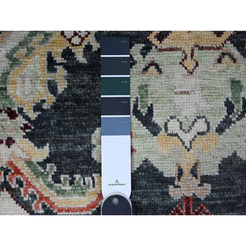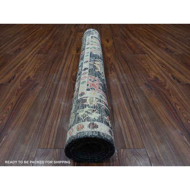 4’x11’7″ Charcoal Black, Angora Oushak Wide Runner, Hand Knotted, Vibrant Village Medallions All Over Design, Wool Weft, Afghan Vegetable Dyes, Oriental Rug Sh89509