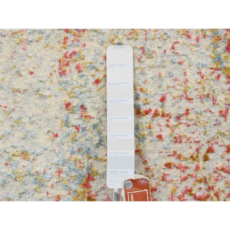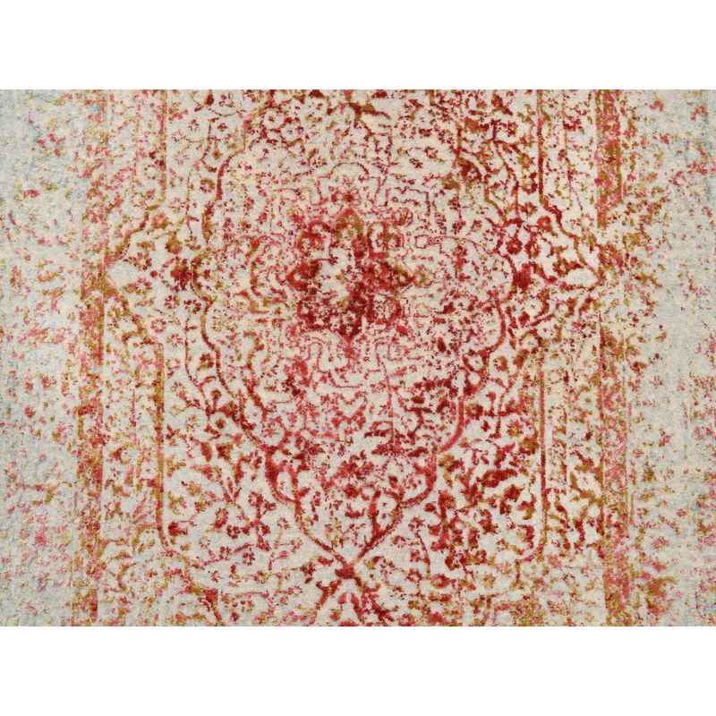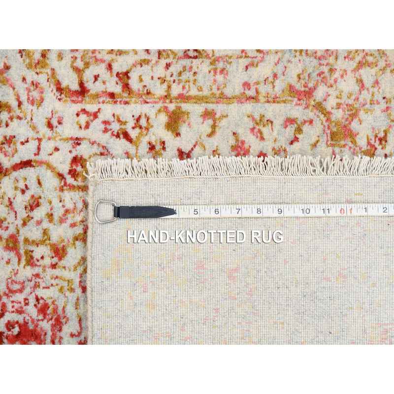 4’x11’9″ Hand Knotted Pink Persian Erased Medallion Design Wool and Pure Silk Oriental Wide Runner Rug Sh63466