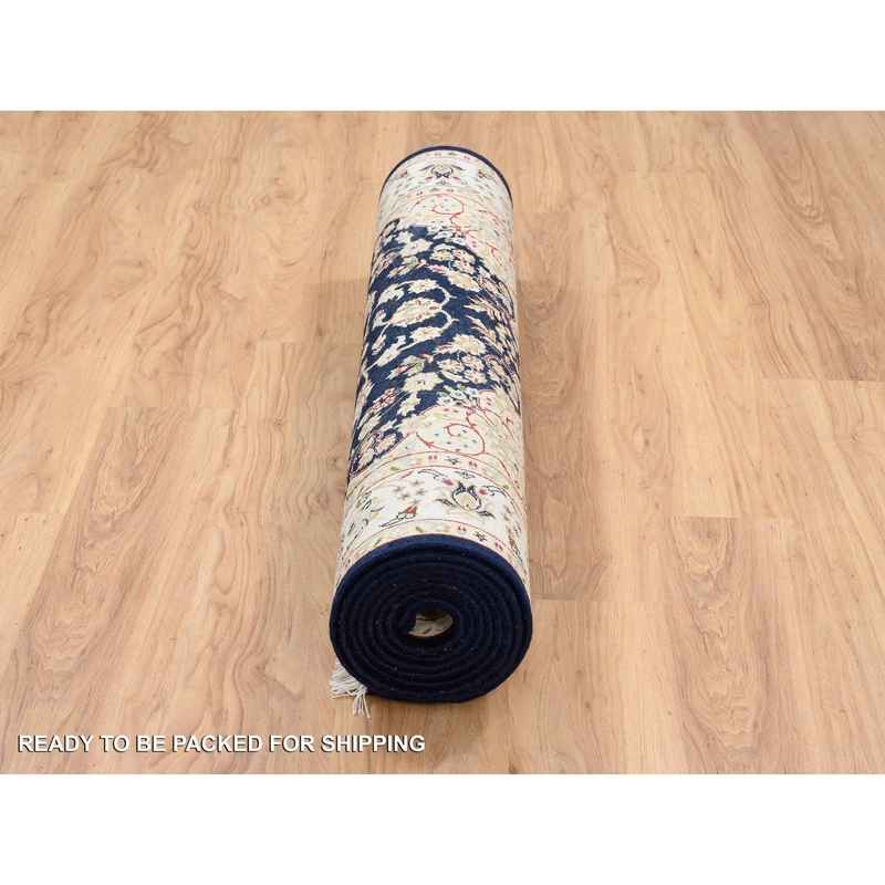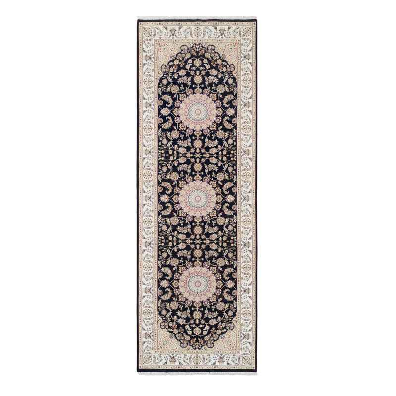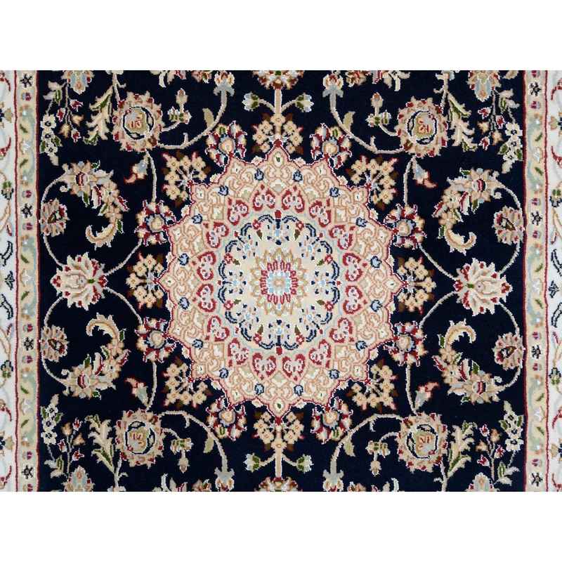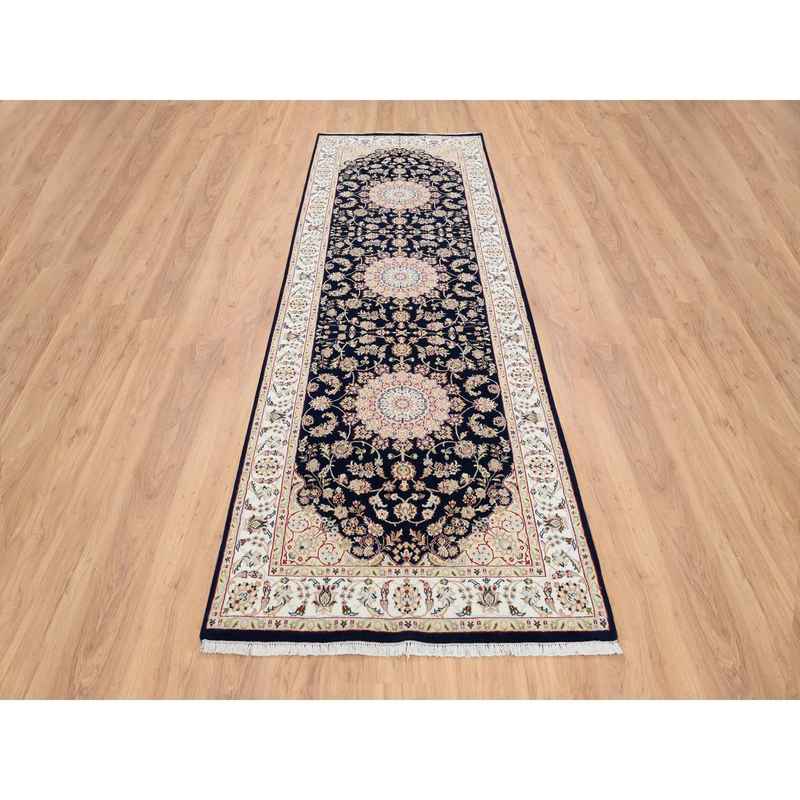 4’x12′ Midnight Blue, Wool Hand Knotted, Nain with Center Medallion Flower Design 250 KPSI, Wide Runner Oriental Rug Sh64000