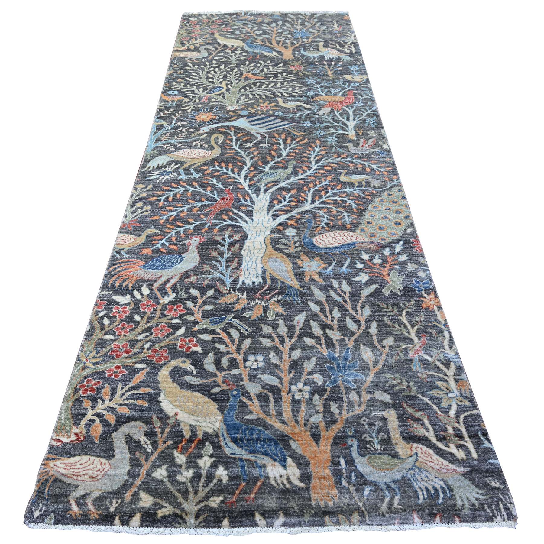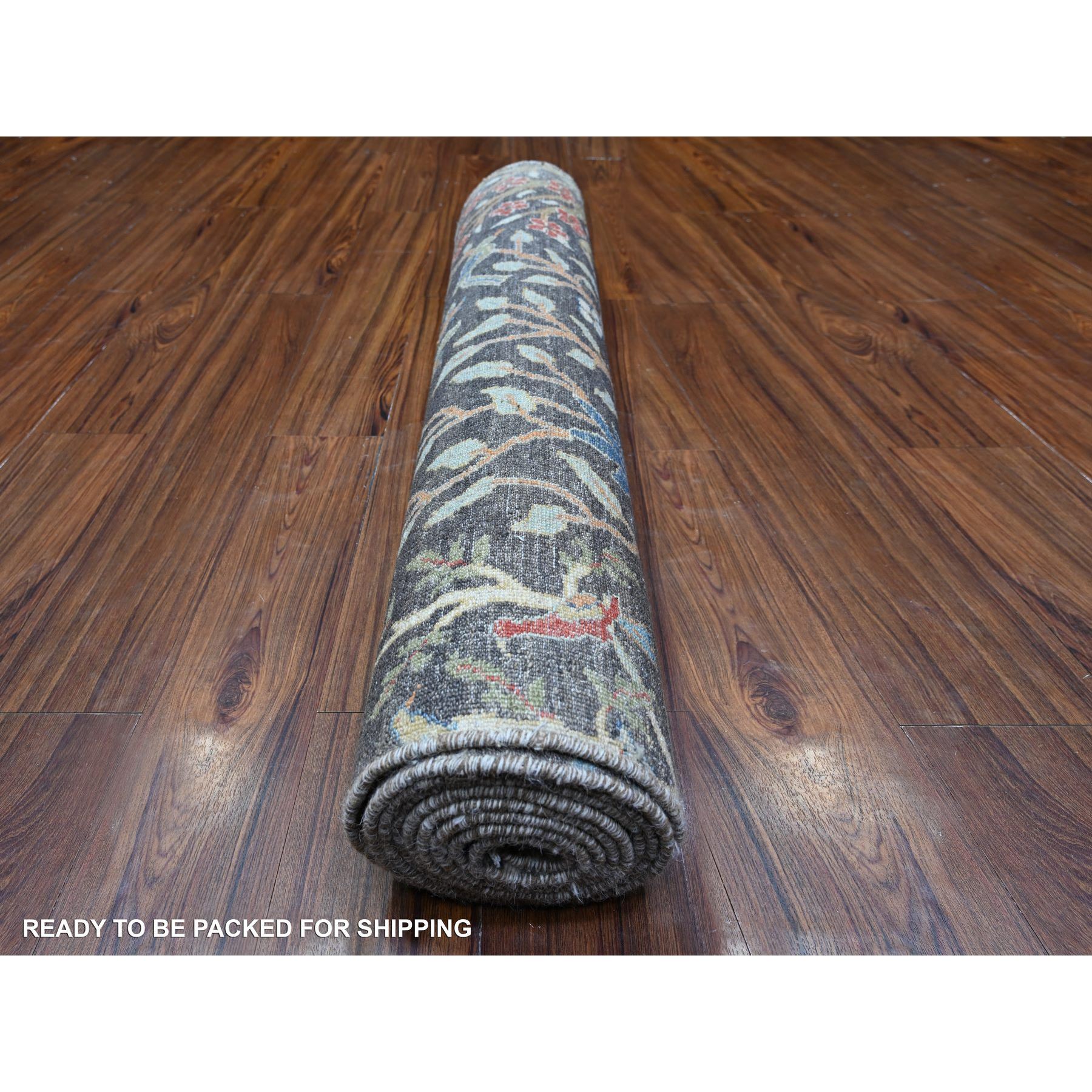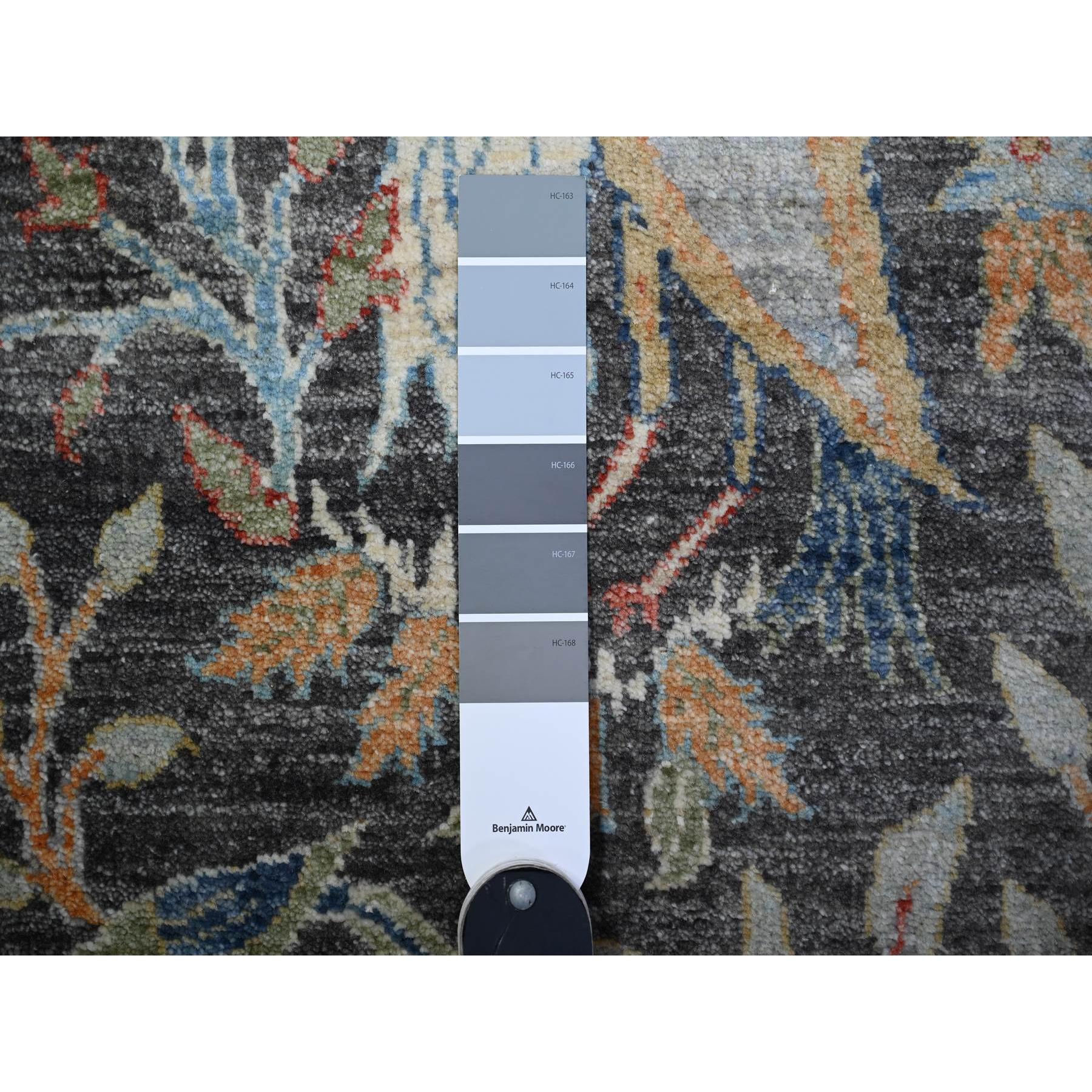 4’x12′ Olive Black, Afghan Peshawar with Birds of Paradise, Hand Knotted, Vegetable Dyes, Organic Wool, Wide Runner, Oriental Rug Sh88031