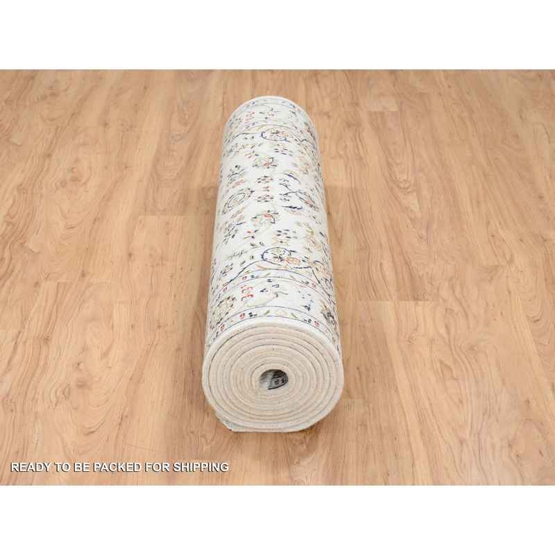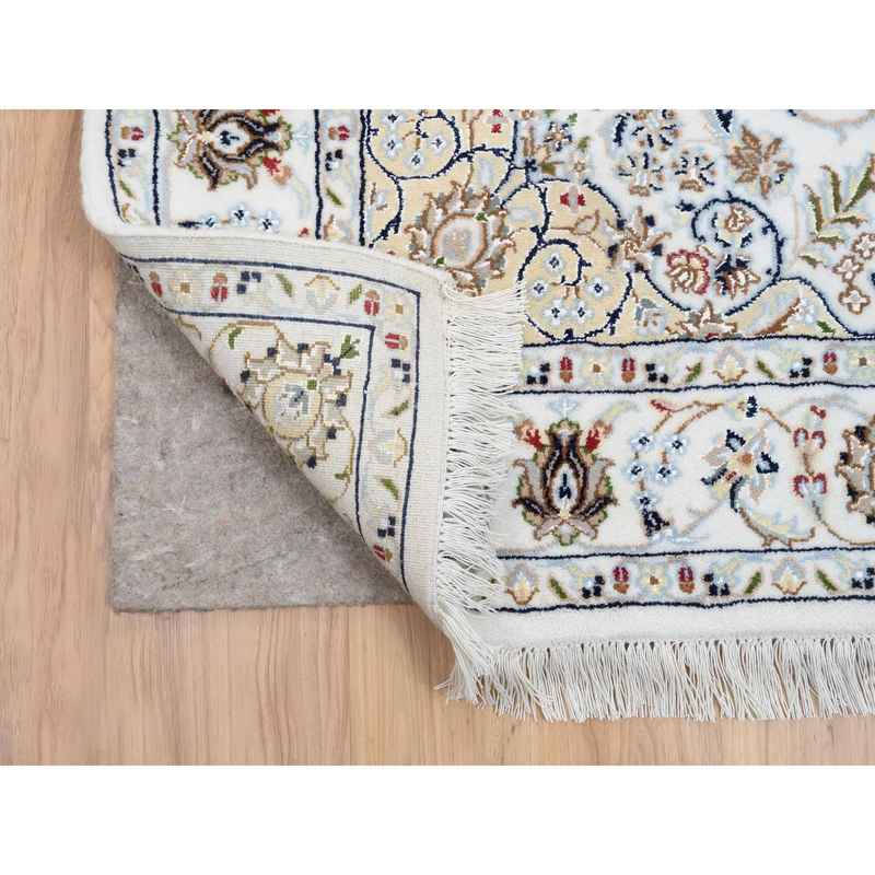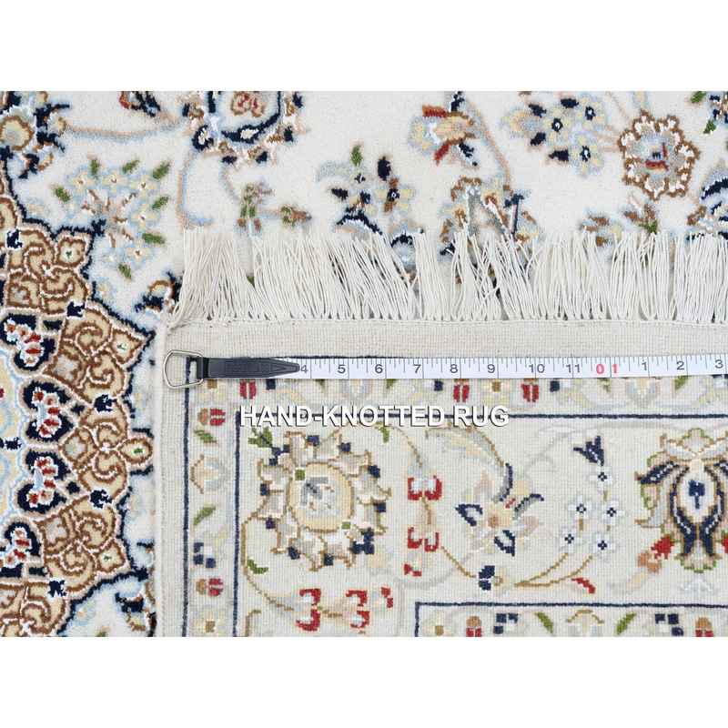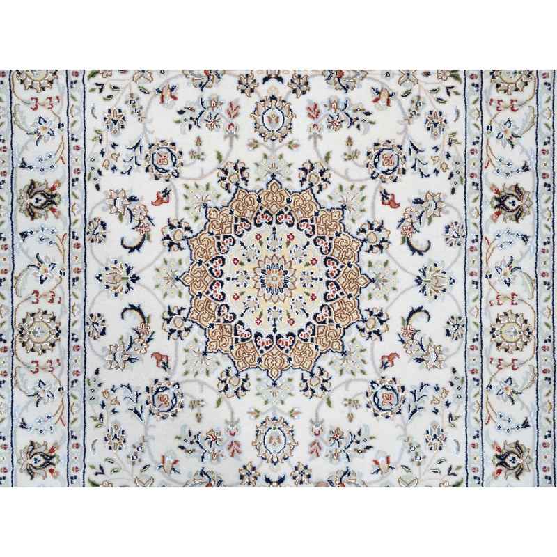 4’x14’7″ Ivory, Wool Hand Knotted, Nain with Center Medallion Flower Design 250 KPSI, Runner Oriental Rug Sh64038