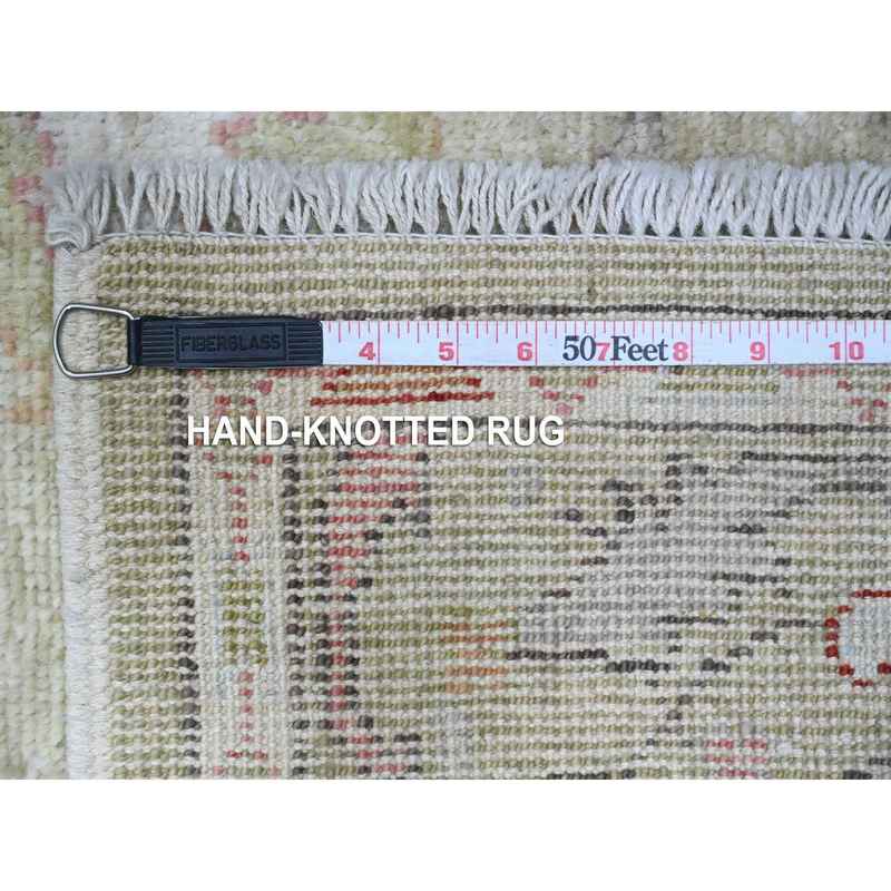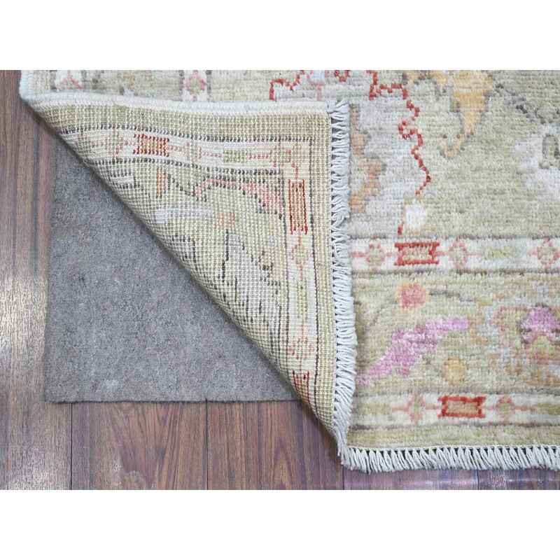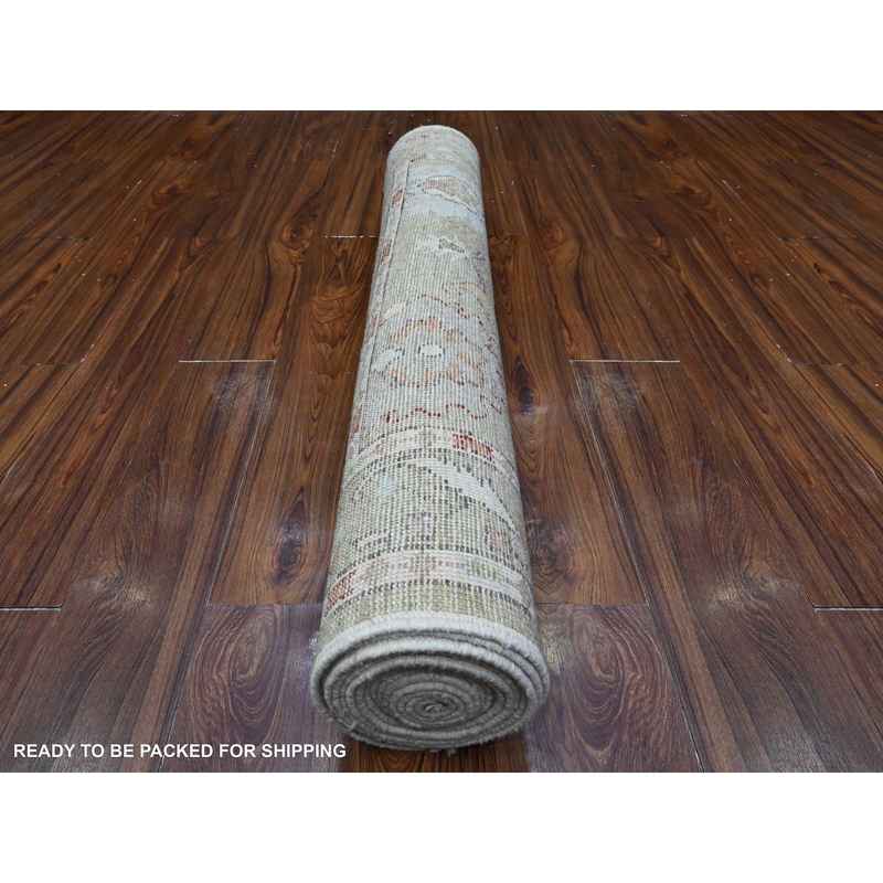 4’x15’9″ Moss Green, Soft Wool Weft, Afghan Hand Knotted Angora Oushak, Village Medallions All Over Design, Vegetable Dyes, Wide Runner Oriental Rug Sh89567