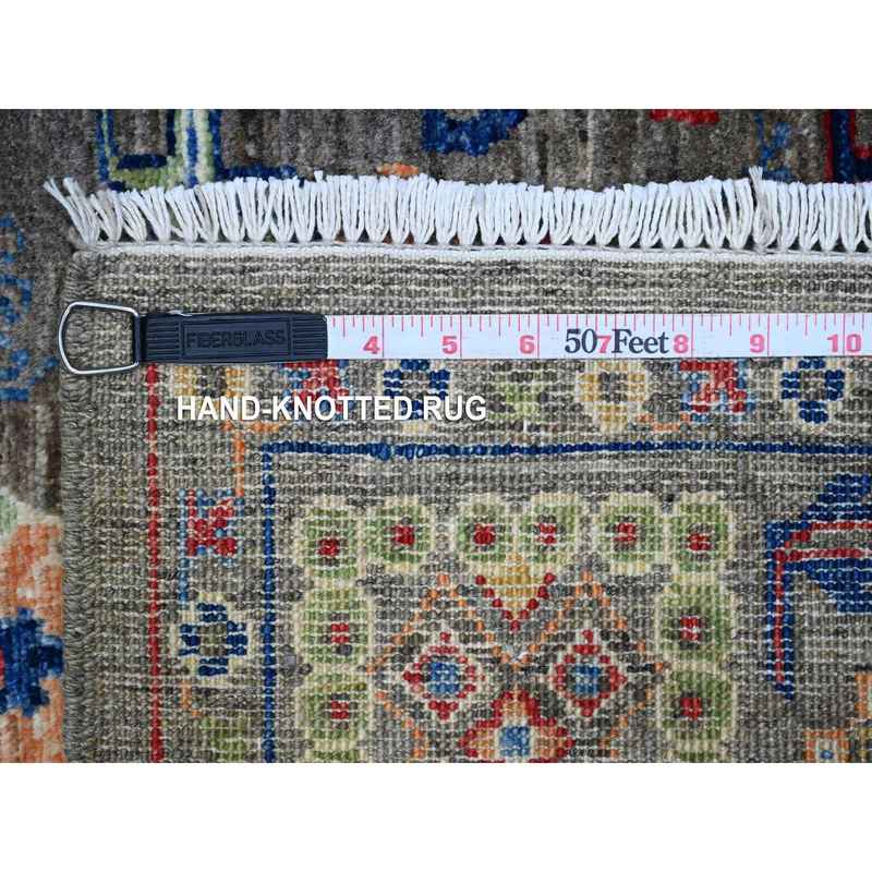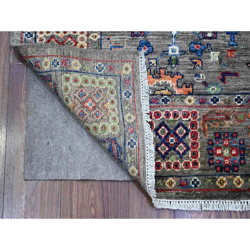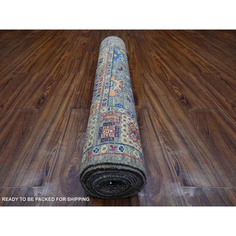 4’x16’1″ Corporate Gray, Aryana Collection, Natural Dyes, Extra Soft Wool, Ziegler Mahal All Over Colorful Design, Hand Knotted, Wide Runner Oriental Rug Sh89669
