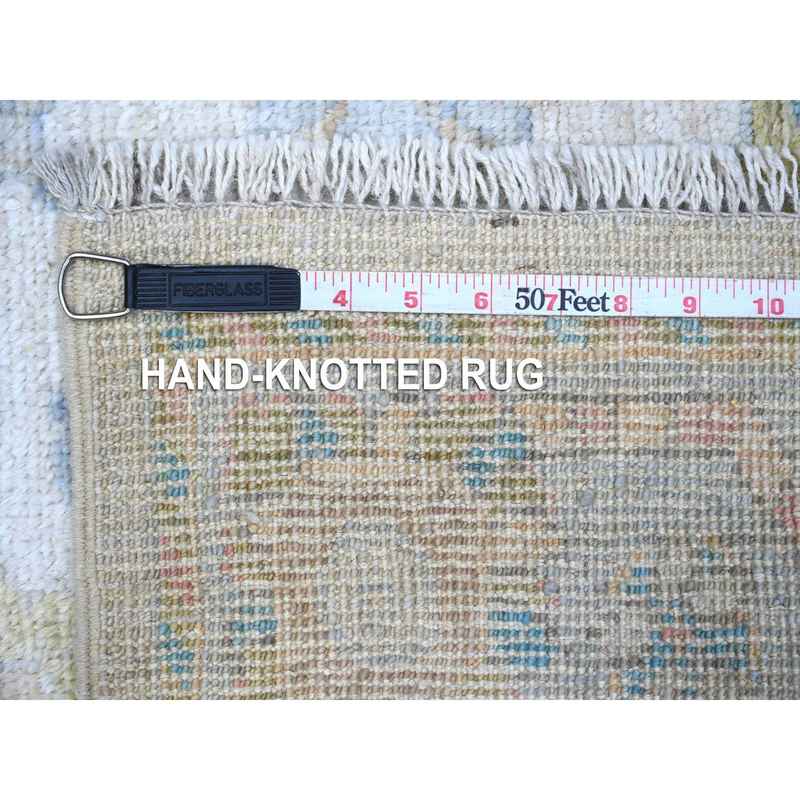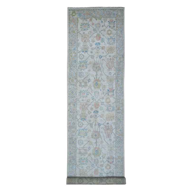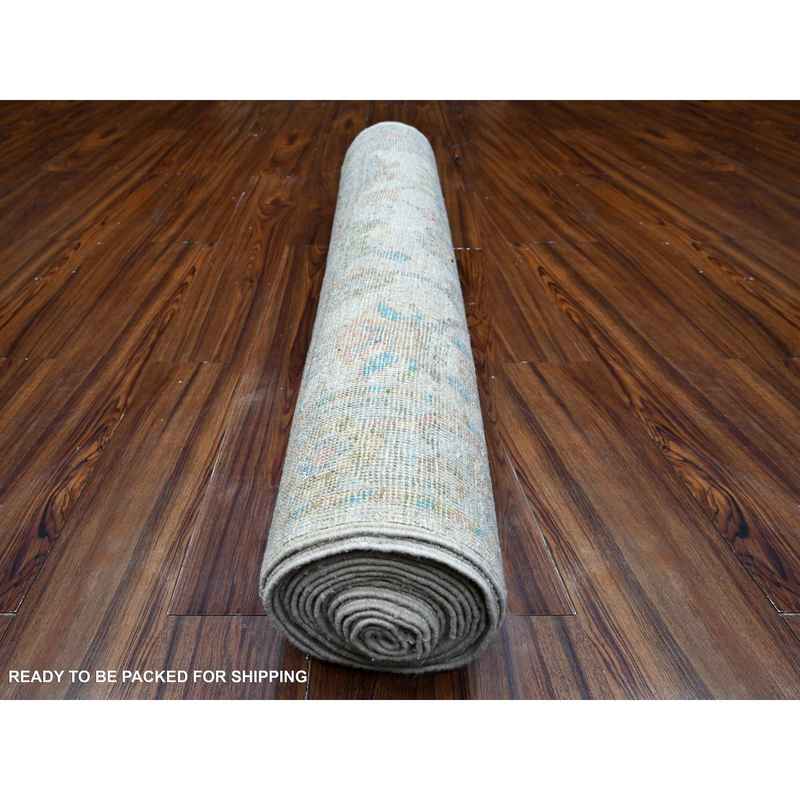 4’x19’6″ Cadet Gray, Hand Knotted, All Over Village Motifs, Natural Dyes, Afghan Angora Oushak, Wool Weft, Wide Gallery Runner Oriental Rug Sh89028