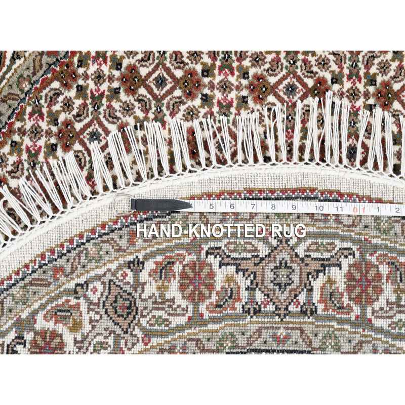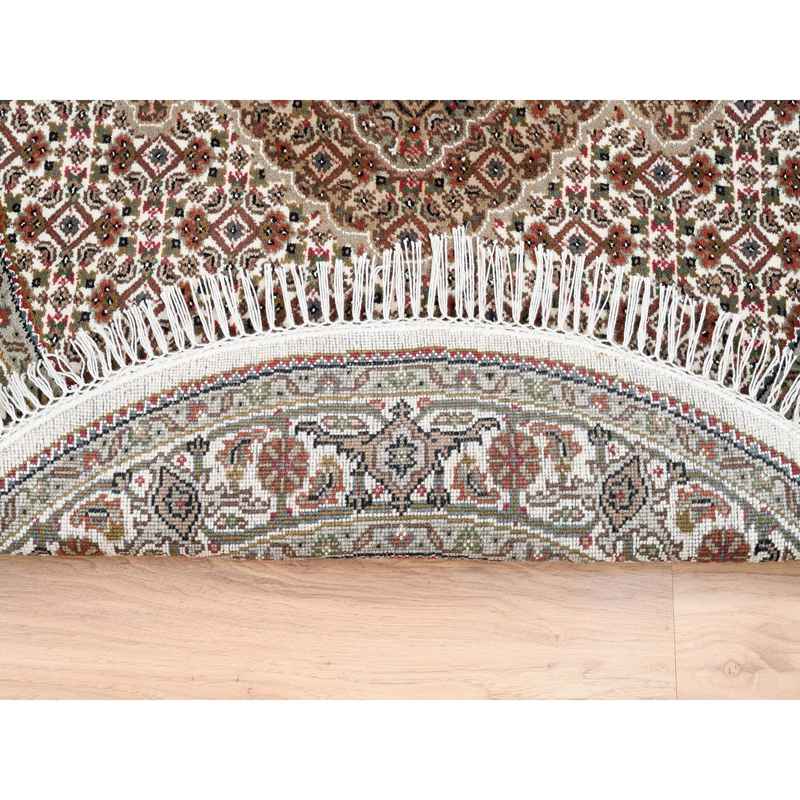 4’x4′ Hand Knotted Ivory Wool Fish Medallion Design Tabriz Mahi Oriental Round Rug Sh62591