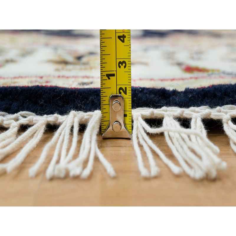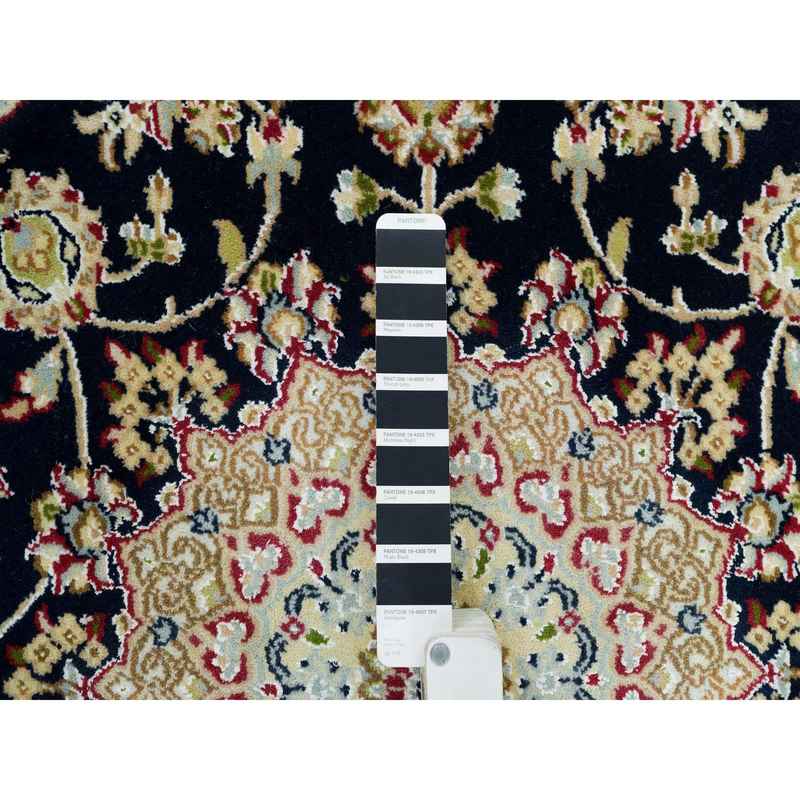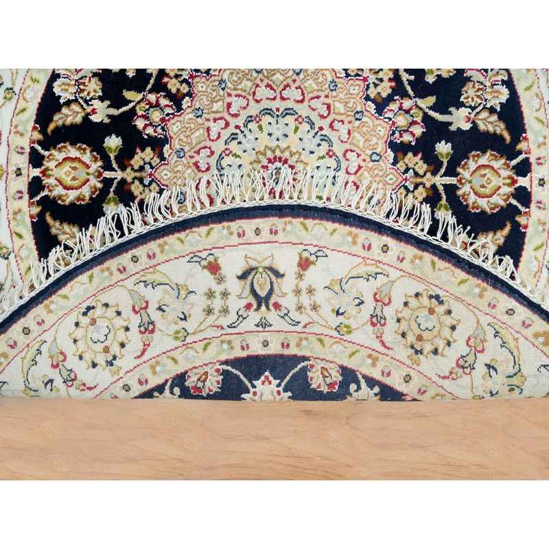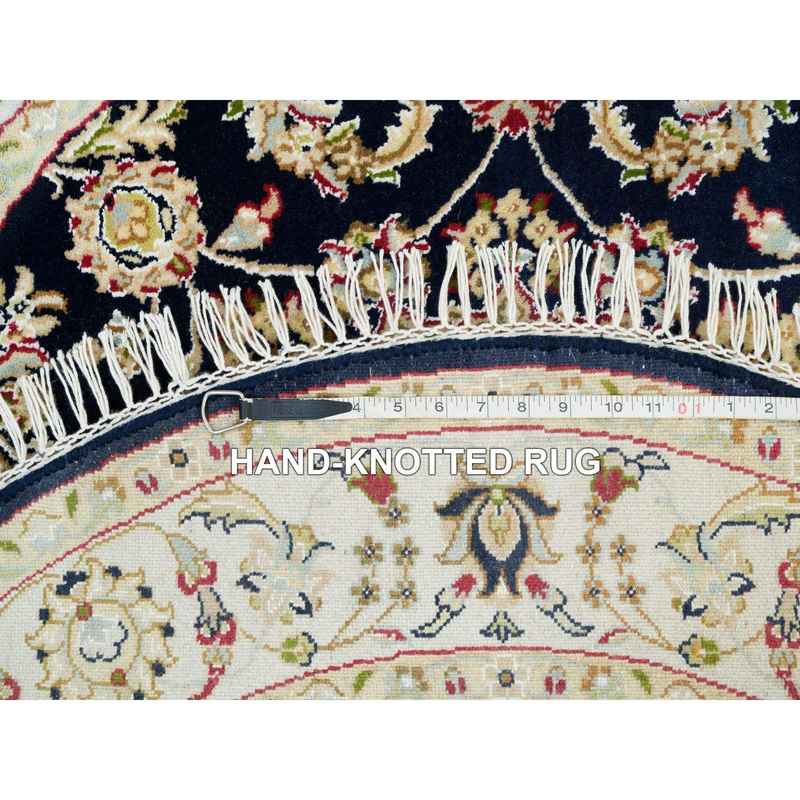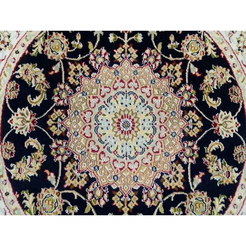 4’x4′ Midnight Blue, Natural Wool, Hand Knotted, Nain with Center Medallion Flower Design, 250 KPSI, Round Oriental Rug Sh90021