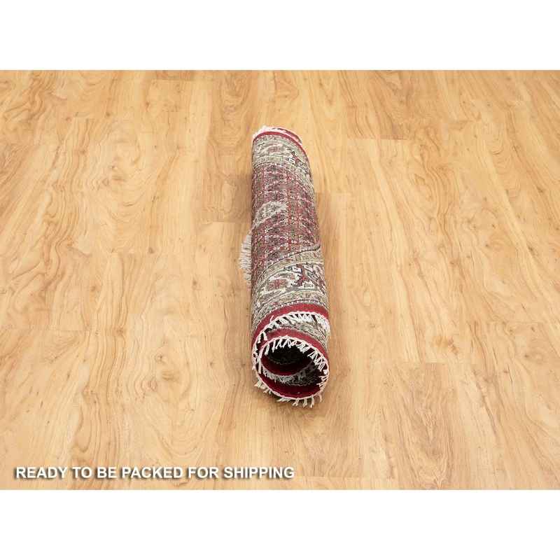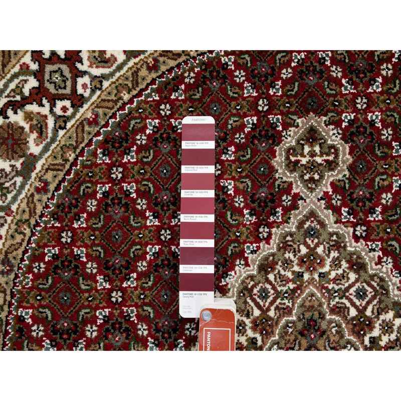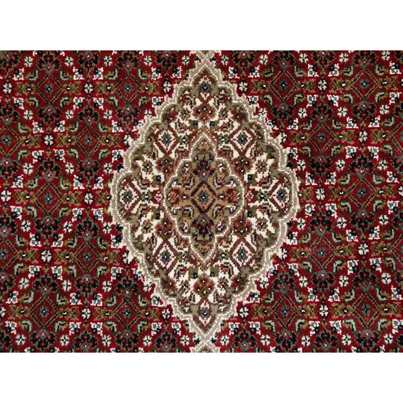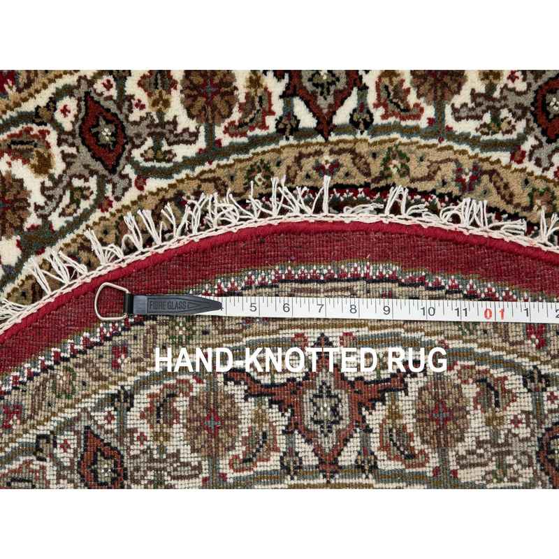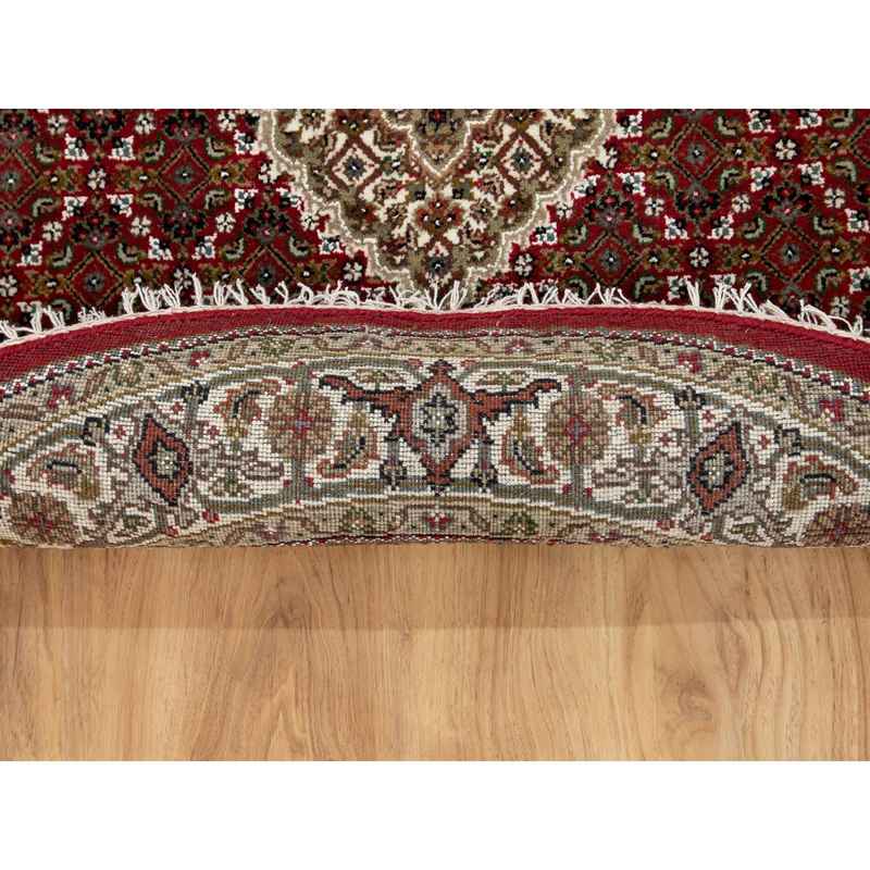 4’x4′ Red Hand Knotted Wool Tabriz Mahi Fish Design Oriental Round Rug Sh58746