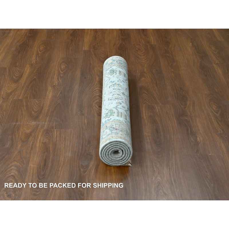 4’x5’10” Glacier Gray, Hand Knotted Organic Wool, Densely Woven, Broken and Erased Persian Heriz Design with Soft Color Pallet, Oriental Rug Sh84914
