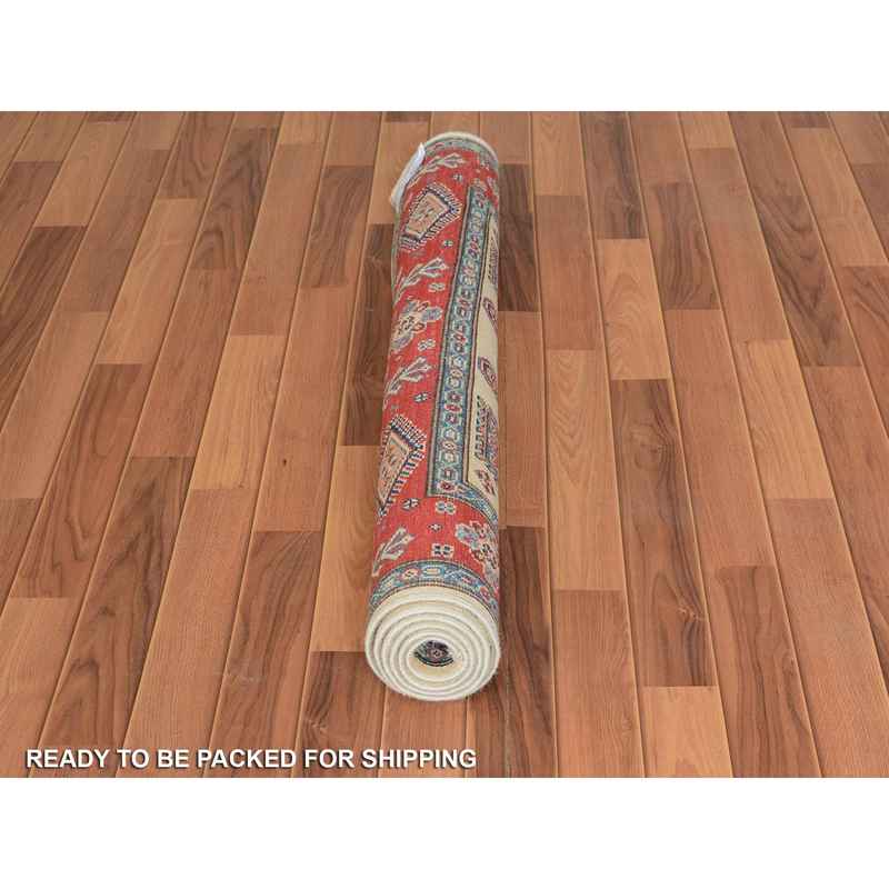 4’x5’10” Ivory Special kazak Tribal Design Pure wool Hand Knotted Oriental Rug Sh57067
