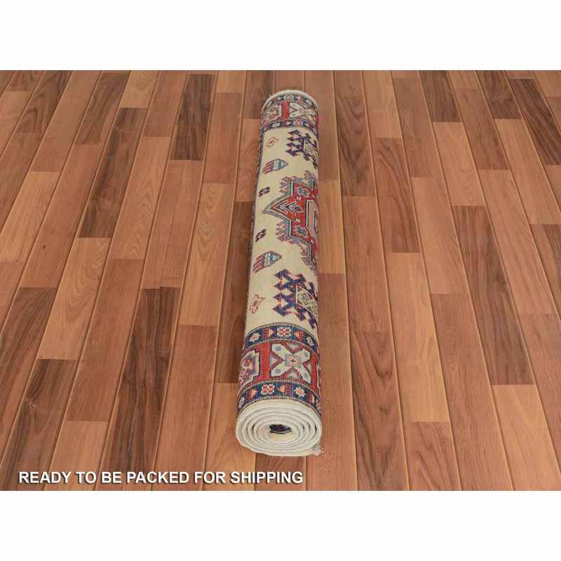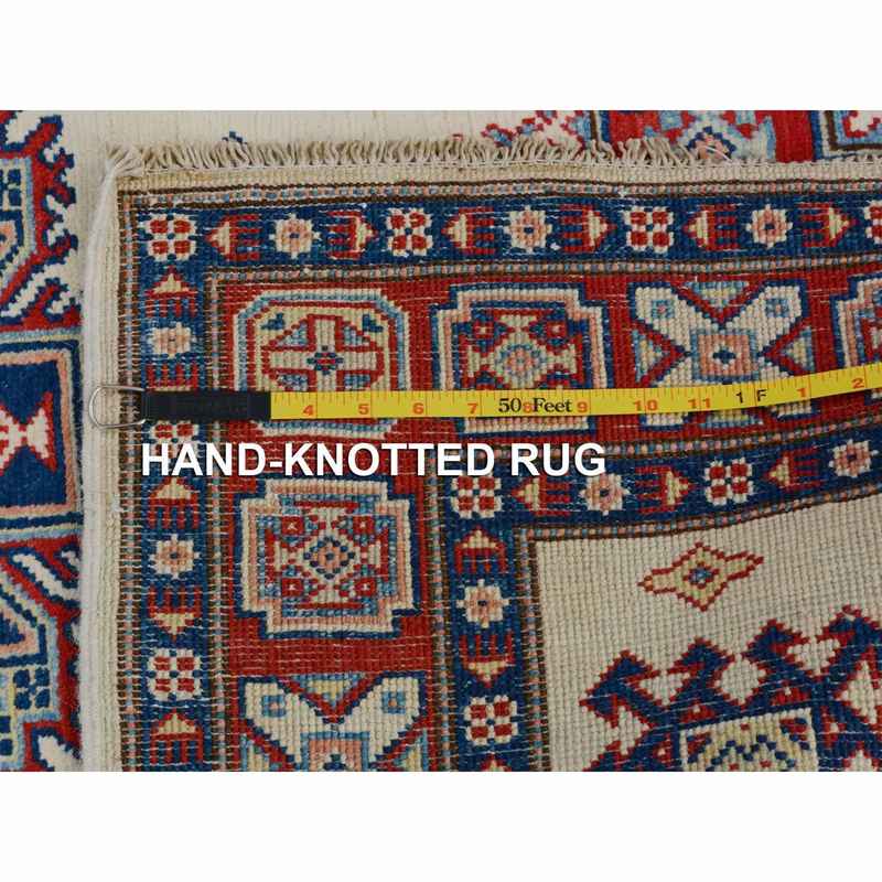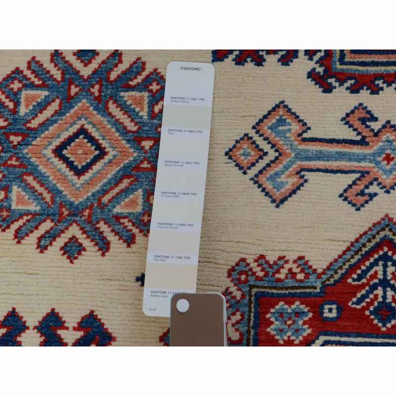 4’x5’6″ Ivory Special Kazak Tribal Design Pure Wool Hand Knotted Oriental Rug Sh57079