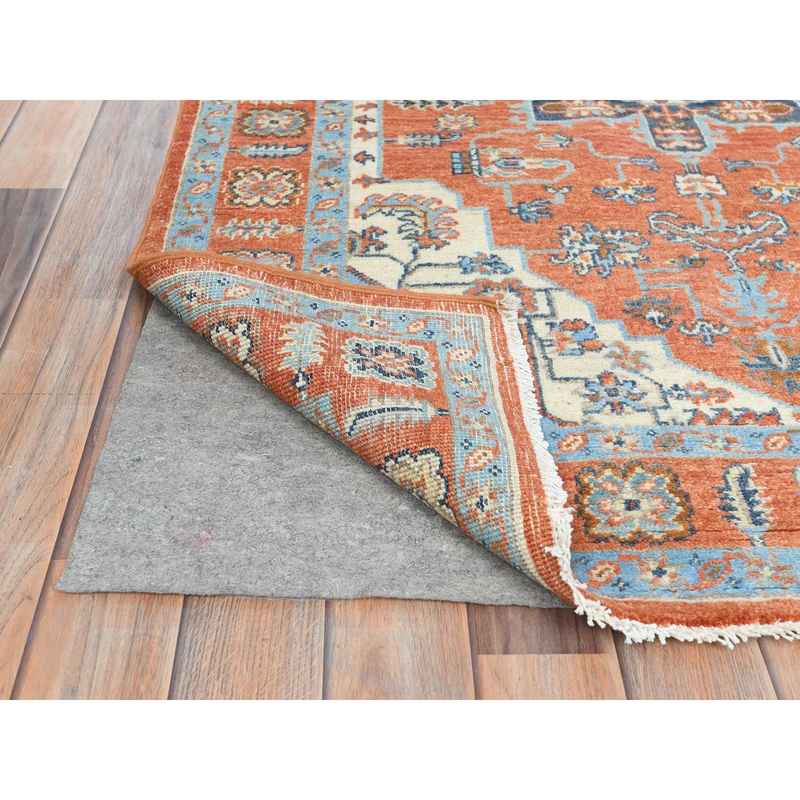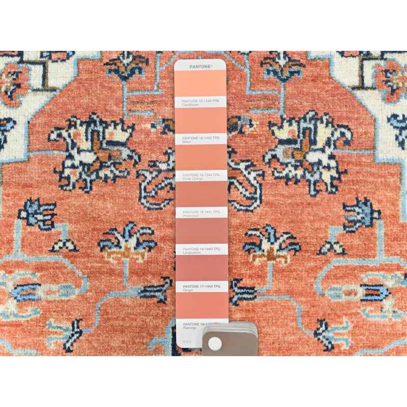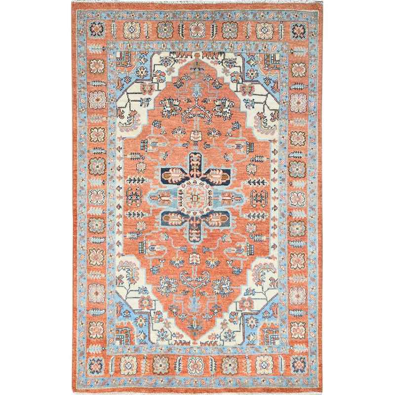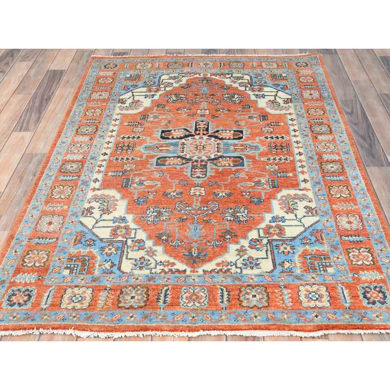 4’x5’7″ Brick Red, Dense Weave Natural Wool, Hand Knotted Afghan Peshawar with Serapi Heriz Design, Vegetable Dyes, Oriental Rug Sh82505