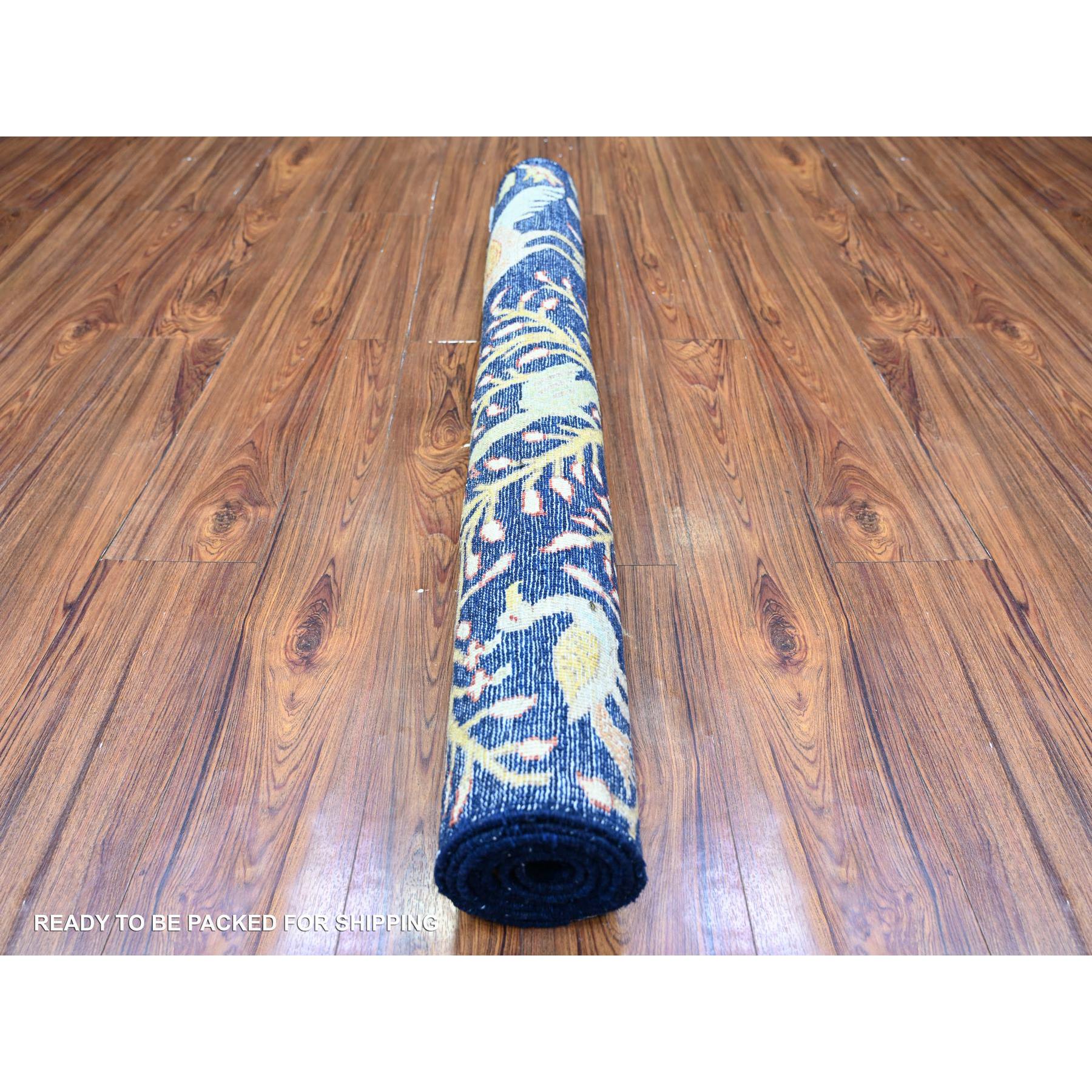 4’x5’7″ Penn Blue, Extra Soft Wool, Hand Knotted, Vegetable Dyes, Bird of Paradise Afghan Peshawar Design, Abrash, Oriental Rug Sh74750