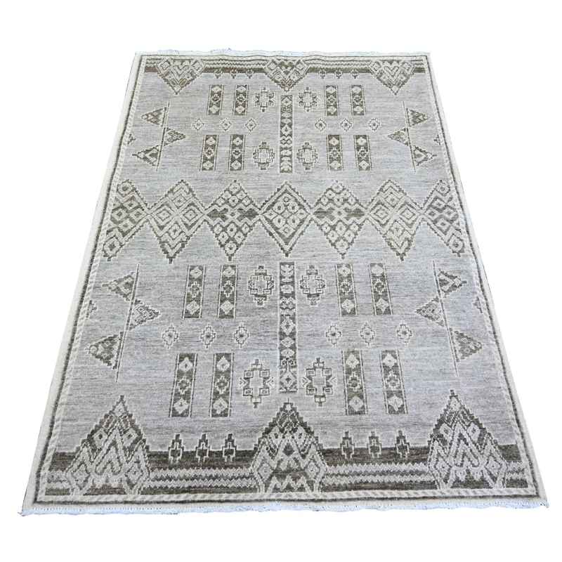 4’x5’8″ Ash Gray, Pure Wool Hand Knotted, Fine Peshawar with Intricate Geometric Motifs Natural Dyes, Oriental Rug Sh74190