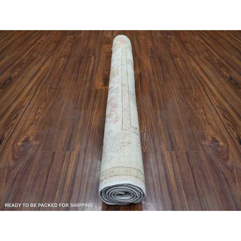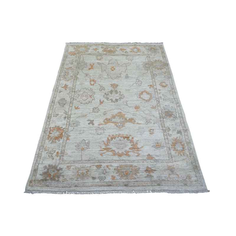 4’x5’8” Cream Angora Oushak Large Leaf Design Natural Dyes, Afghan Wool Hand Knotted Oriental Rug Sh71757